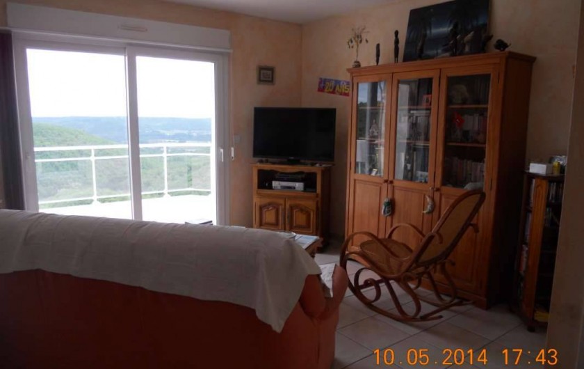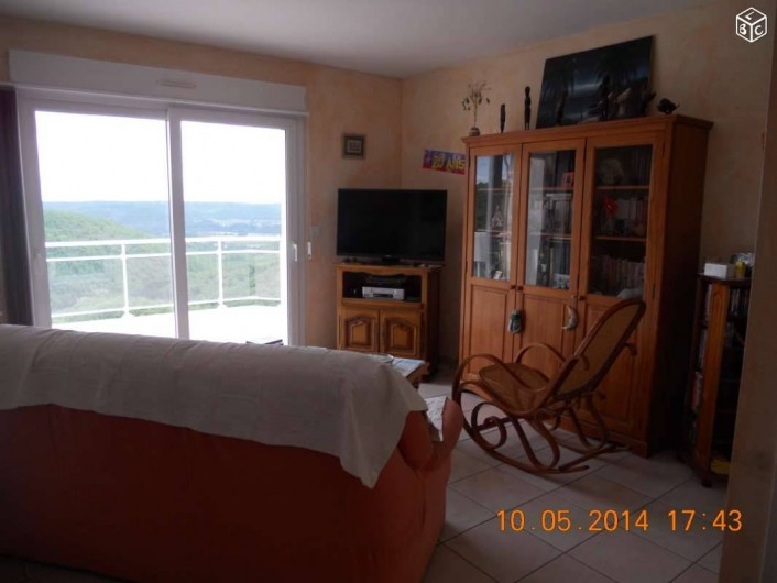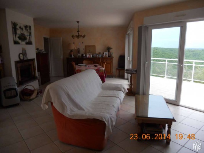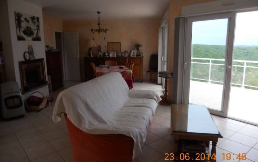 Grand salon avec terrasse extérieur en partie couverte plein sud donnant sur la vallée .