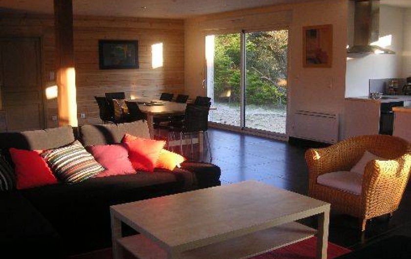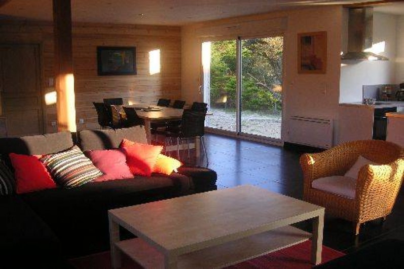 2 lits 140. 2 lits 90 superposés + 1 lit tiroir. 2 Lits 80 jumelés + 1 lit 90 supplémentaire. Salle d'eau. Salle de bains. 2 wc. TV Satellite. Lecteur DVD. Chaine Hi-fi. Lave-linge. Lave-vaisselle. Chauffage électrique. Toutes Charges Comprises. Ménage en option. Draps en location. Terrain non clos privé. Grande terrasse en bois. Salon de jardin. Garage.