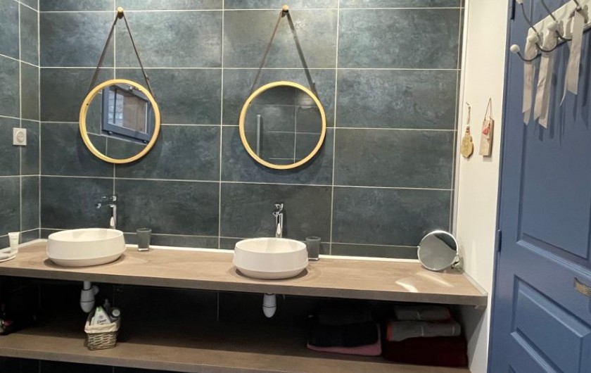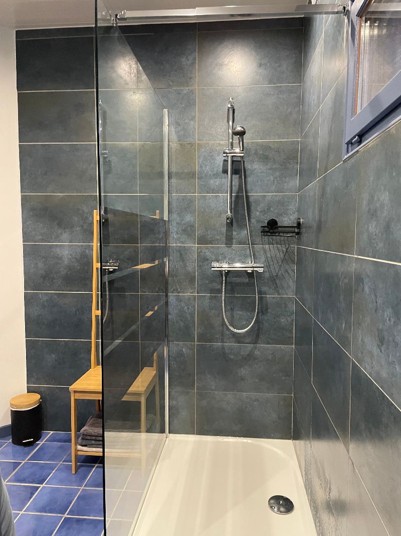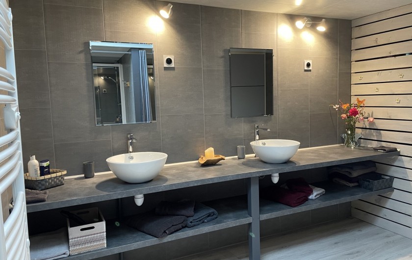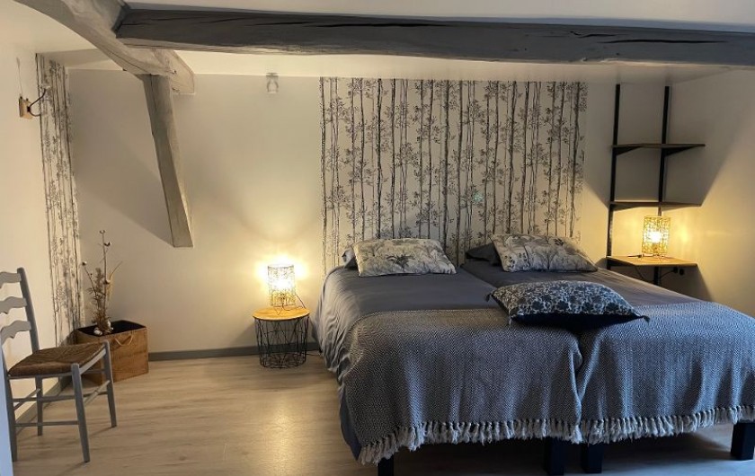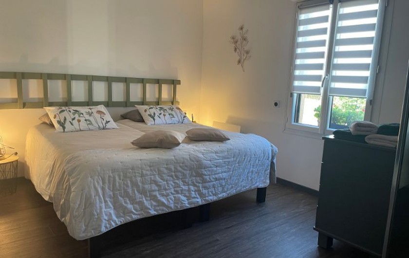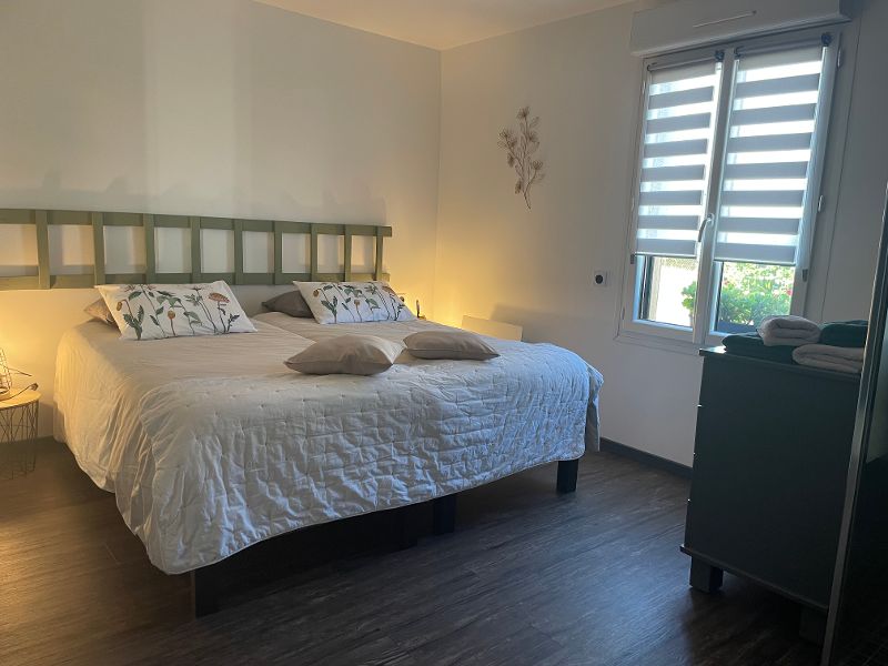 - 1 chambre au rez-de-chaussée avec sa salle d'eau privative aux normes handicap, équipée de 2 lits individuels 90x200, transformables en un lit de 180