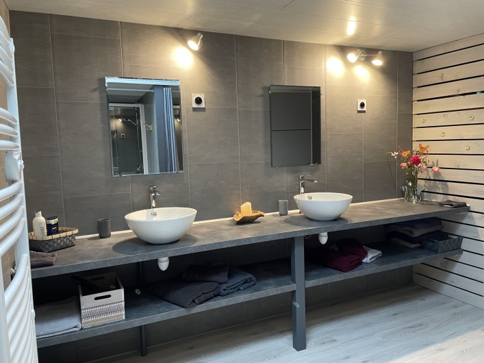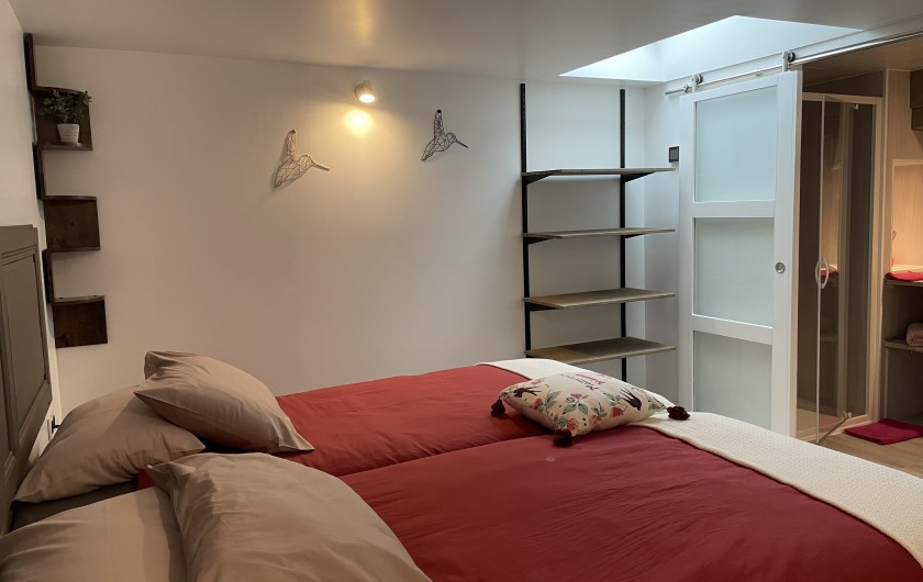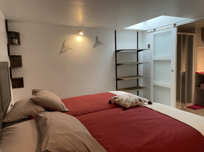 * 1 chambre avec salle d'eau privative, équipée de 2 lits individuels 90x200, transformables également en un lit de 180