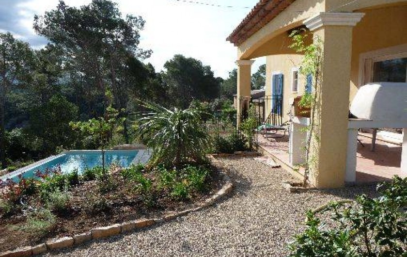 Villa située en haut d'une petite colline boisée sur une pinède de 3400 m², implantée sur des restanques au milieu d'oliviers, plein sud, avec vues dominantes sur le château et le village d' Entrecasteaux, ainsi que sur le massif des maures. La commune est située sur la route des vins de Côtes de Provence. Village médiévale authentique et proche, accessible par sentier forestier