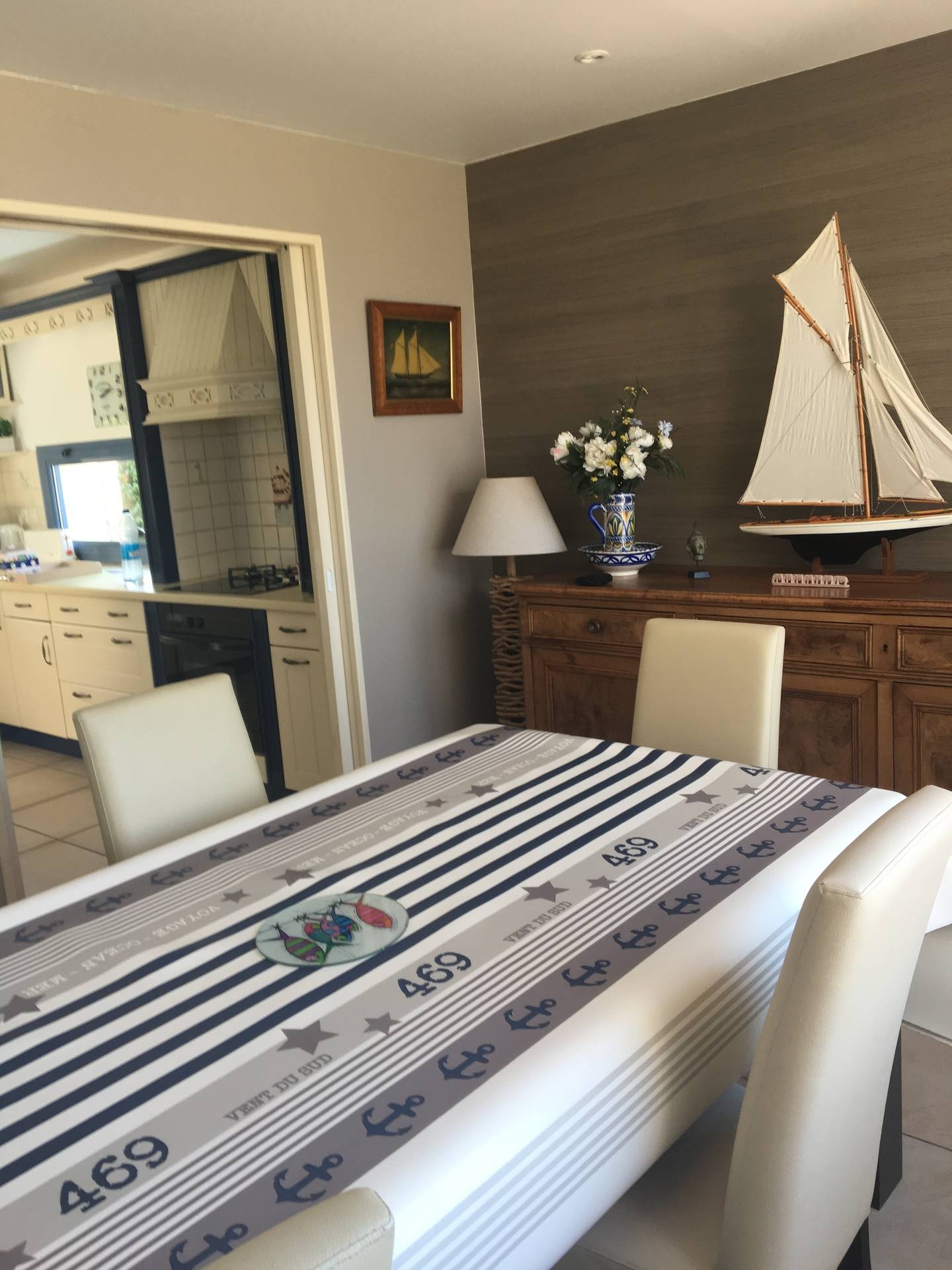 Location pour 14 personnes à 400m de la plage et à 300m du centre ville avec piscine de 9x5m chauffée couverte situé dans un bâtiment relié à la maison par une galerie couverte et vestiaire équipé d'une douche.