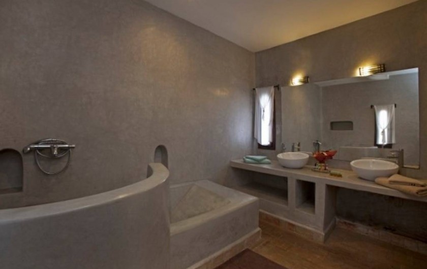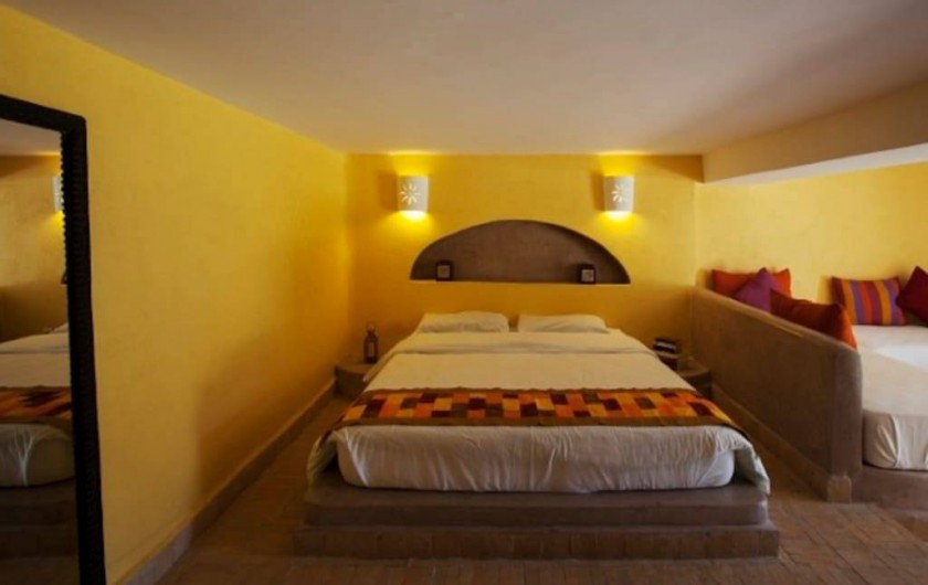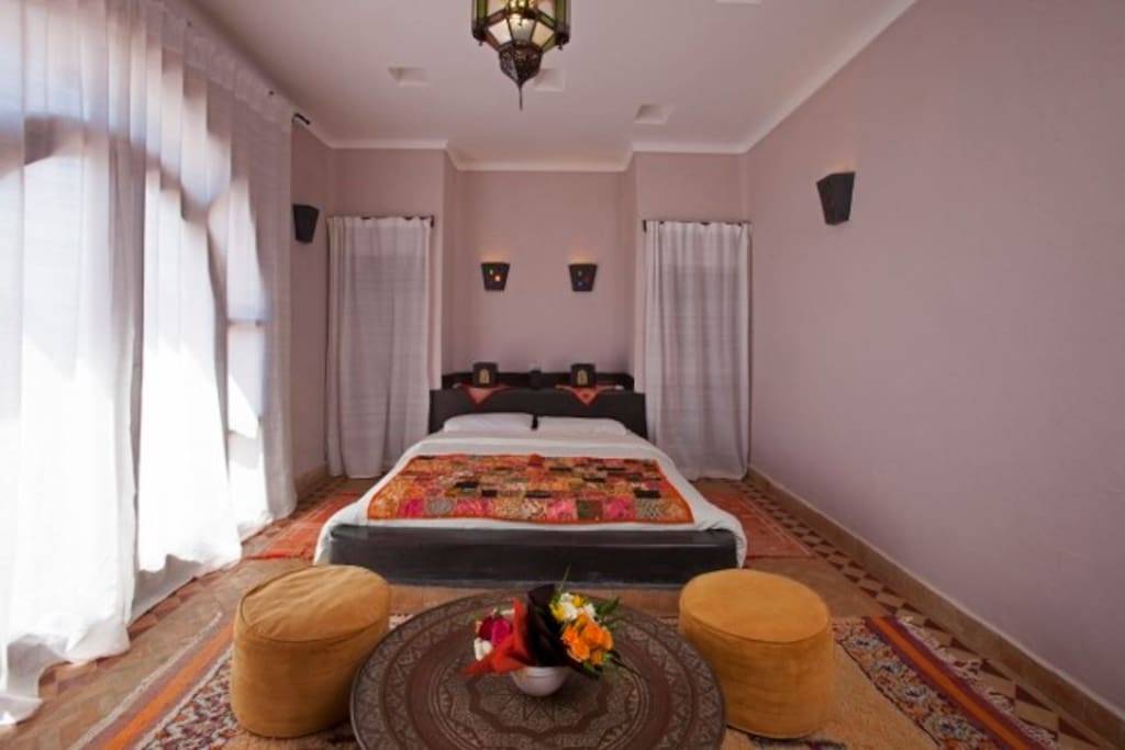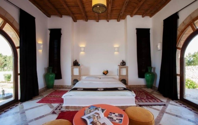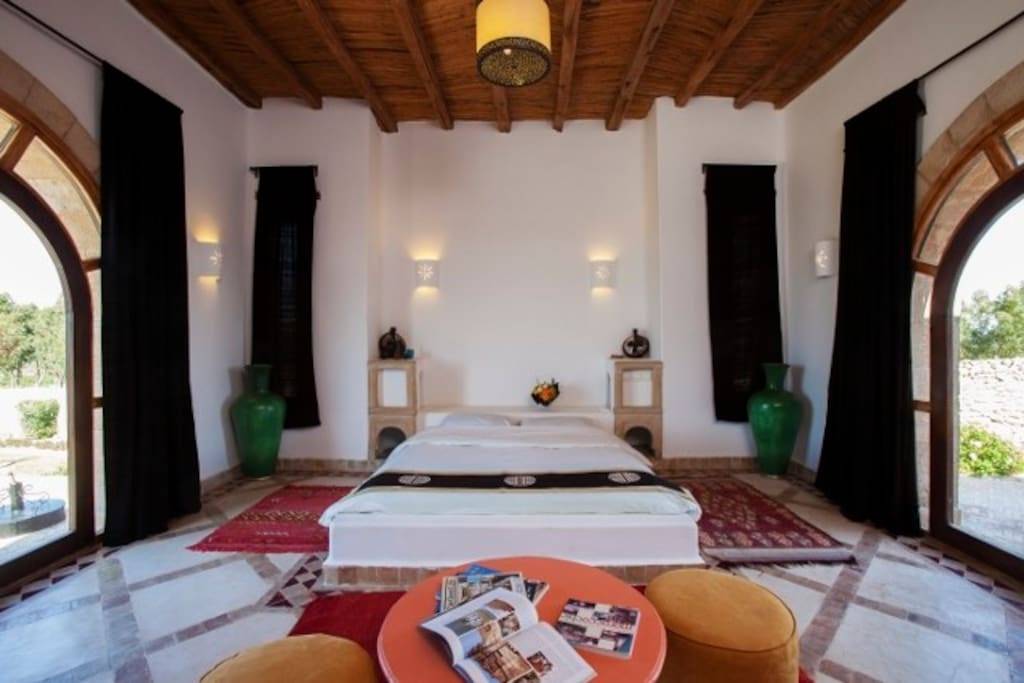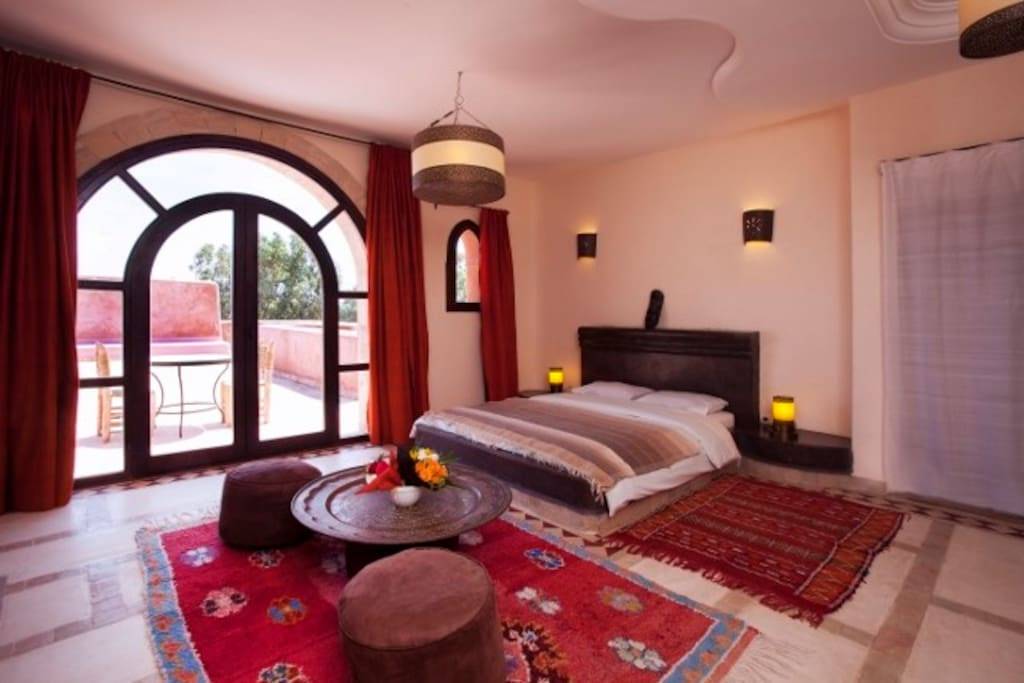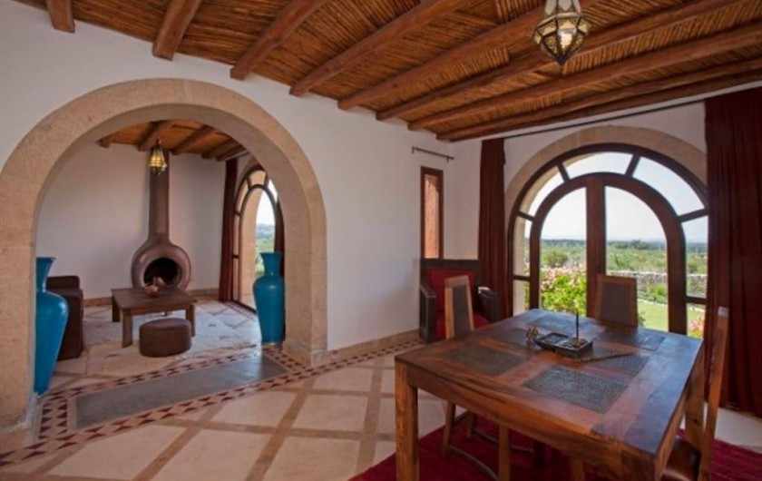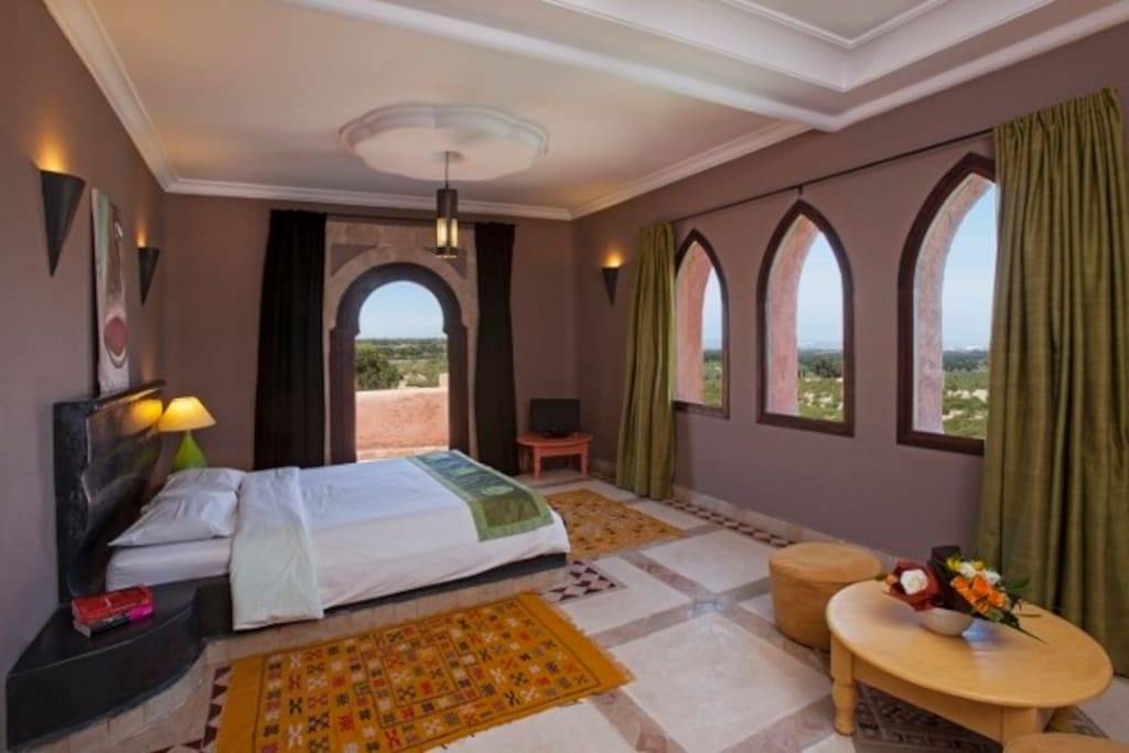 Venez découvrir un lieu magique et unique, à quelques kilomètres d'Essaouira! Digne d'un château des milles et unes nuits avec ses hautes murailles en pierres peintes et sa décoration traditionnelle, la villa Gonatouki est un havre de paix idéal pour des vacances réussies. Un cadre authentique et accueillant, répondant aux exigences du confort moderne !La villa Gonatouki dispose de 10 chambres, dont 3 suites, décorées élégamment, en tadellaekt et petits meubles d'artisanat marocain. Toutes sont équipées d'une salle de bains privée avec ses toilettes et d'une terrasse … ensoleillée donnant sur de magnifiques paysages : mer, montagne et campagne. Les nombreux salons et le patio dégagent une ambiance chaleureuse et familiale. Le personnel est aux petits soins pour ses hôtes, et le propriétaire vous conseille pour toutes les activités et découvertes à faire. Le wifi avec fibre optique est disponible partout. Le couloir de nage - avec vue sur la mer - est un must ; la deuxième grande piscine d'agrément et son bassin pour enfants, un vrai bonheur. Le salon de massage et le hammam vous laisseront un souvenir inoubliable. Pour le déjeuner ou le dîner, le salon, la terrasse ou à la table d'hôtes vous accueillent selon vos envies. Vous goûterez aux délicieuses spécialités de notre cuisinière.Bienvenue à Gonatouki ! Lire moins Lire la suite