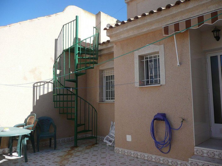 Un long couloir dans le jardin ( 200 mètres carrés) vous emmène à l´entrée principale de la maison où vous trouverez deux chambres et un grand salon, la cuisine et une salle de bains. Vous traversez la cour , derrière la maison où il y a un barbecue et à l´étage vous trouverez une autre chambre et une salle de bain avec une grande terrasse solarium avec la vue sur la mer et sur le port de plaisance de Los Urrutias.
