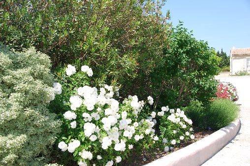 Le jardin totalement clos et entouré de haies est composé d’une pelouse et de plusieurs massifs de fleurs.