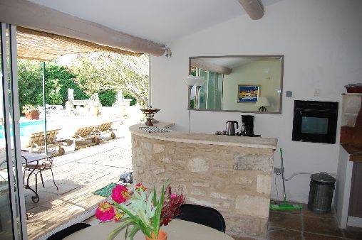 la principale s’ouvre devant la piscine par de grandes baies vitrées. Elle possède une salle à vivre avec cuisine américaine et un grand four à pain et à pizza. Elle donne sur une grande terrasse ombragée surmontée d’une tonnelle. Cette deuxième maison comprend une suite avec un salon pouvant faire office de chambre et d’une chambre séparée. Elle possède en outre une salle de douche avec toilette indépendante.