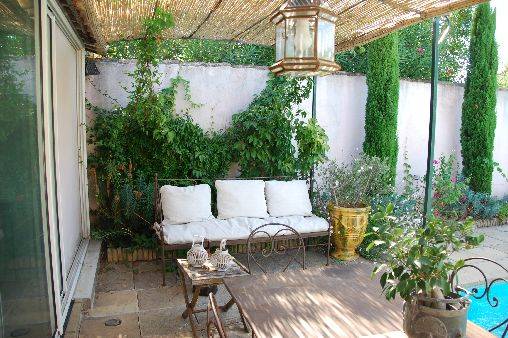 Belle propriété de charme à Eyragues, petit village des Alpilles, situé à 5 minutes de Saint Rémy de Provence, à moins de 15 minutes d’Avignon et à 5 minutes des Baux, comprenant deux maisons attenantes, nichées dans un jardin clos ombragé et une grande piscine orientée sud, baignée de soleil et de lumière, entourée de lauriers-roses et de massifs de fleurs. Elle offre de larges zones ombragées sous des tonnelles recouvertes de glycine et de jasmin.