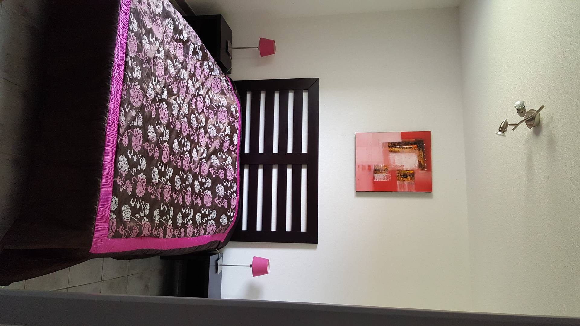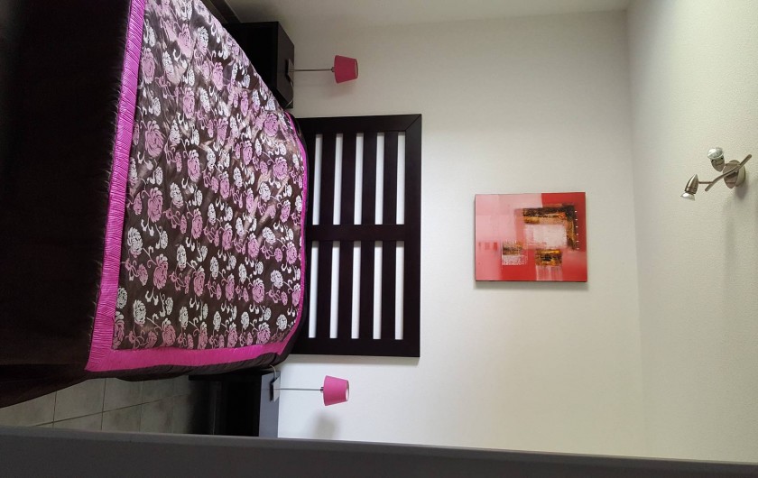 - à l'étage : 2 chambres, une avec lit double, l'autre avec 2 lit simples, les 2 avec placard mural et table de chevet, une salle de bain (baignoire, lavabo, 2ème wc).