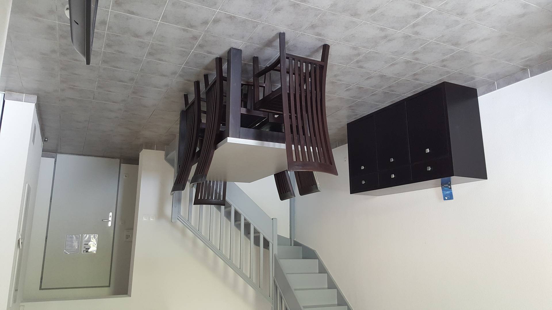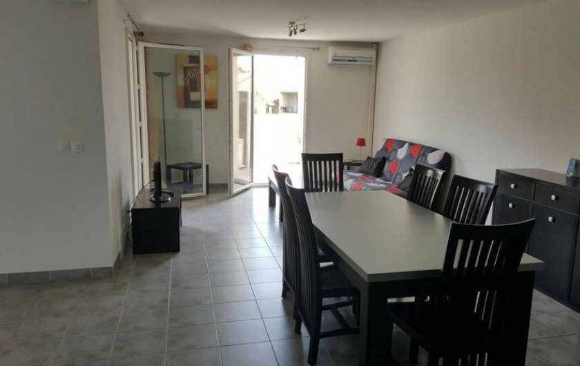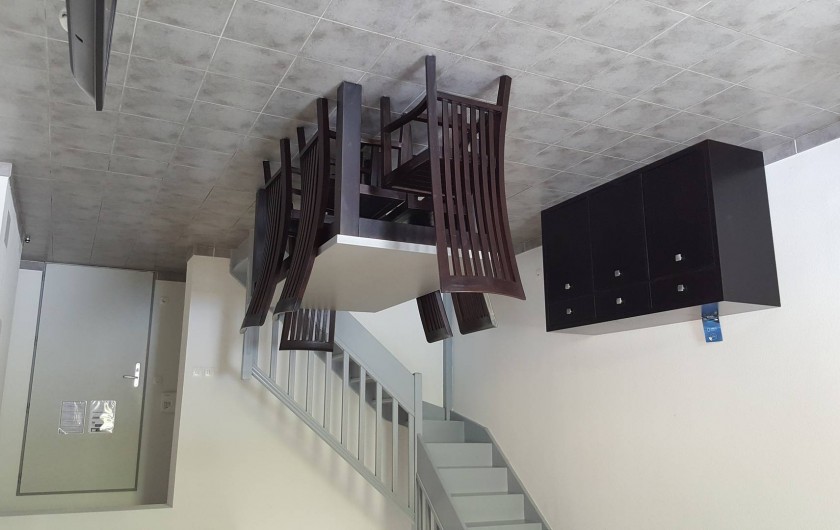-au rez-de-chaussée : une entrée avec un wc, une chambre avec lit double et sa propre salle de douche (lavabo + douche), un coin salon avec TV, 1 canapé clic-clac 2 places, climatisation réversible, un coin salle à manger avec 1 table et 6 chaises, un bahut un coin cuisine équipée, lave-vaisselle, cuisson 4 feux,