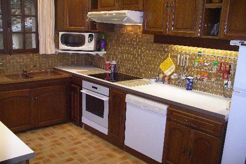 La cuisine équipée, indépendante, comprend frigo-congélateur, four, lave-vaisselle, micro-ondes et taques vitro-céramiques.