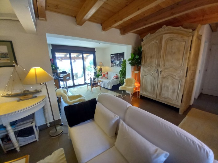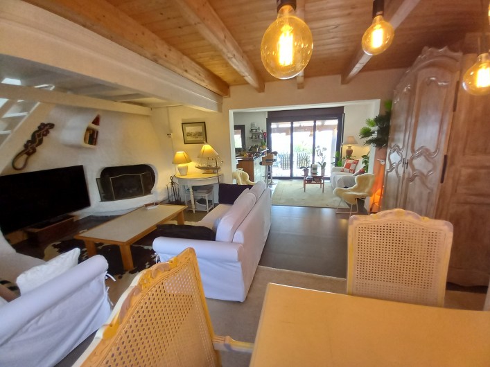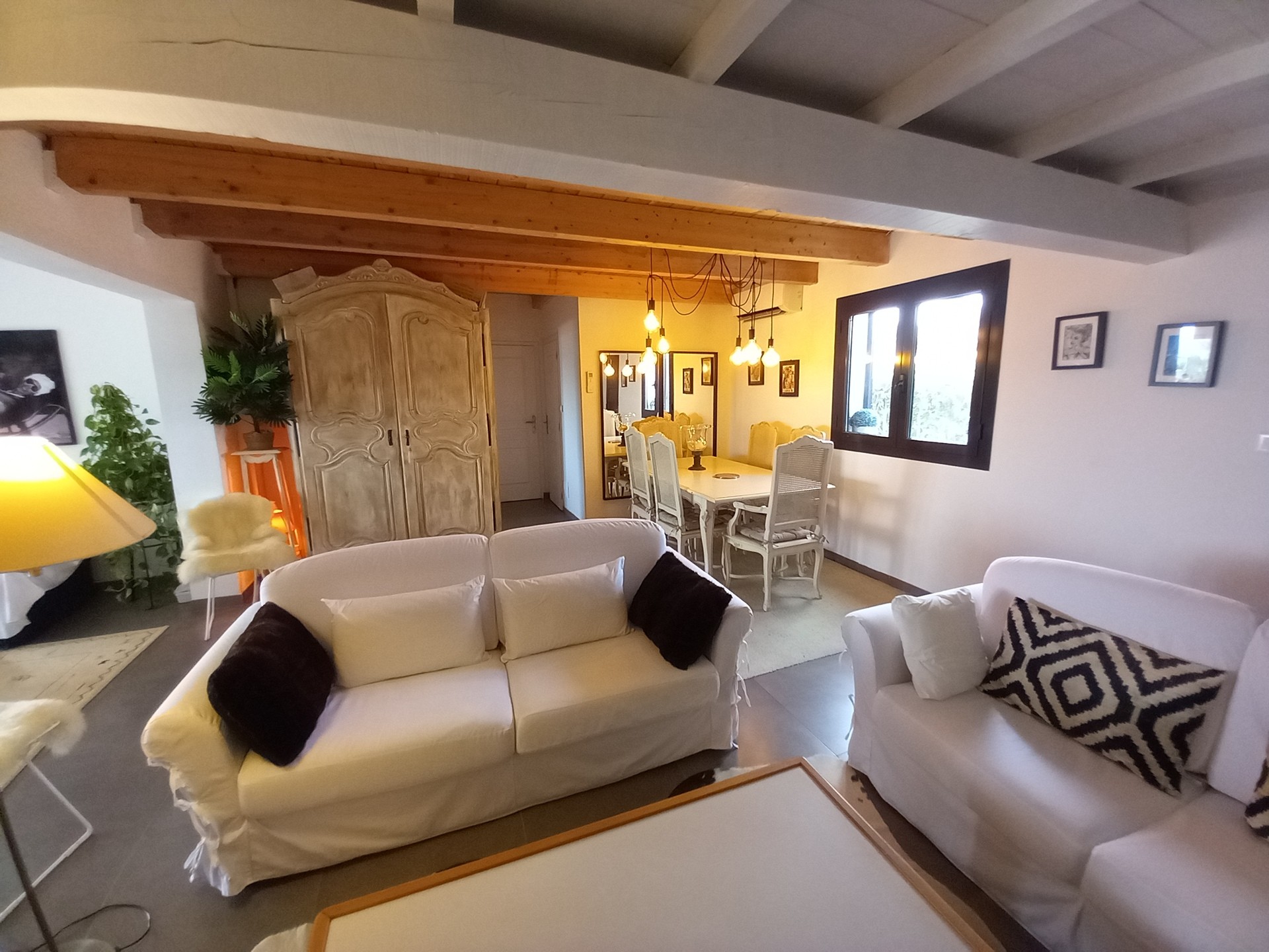 Maison de 110 M2 de 4 pièces principales, cuisine, 2 SdB, douche, 3 chambres doubles, 2 lits en 160 cm. une chambre avec 2 lits en 90, + un canapé lit 2 pers. et 1 canapé lit 1 pers dans le living, couchage : 8/9 personnes.