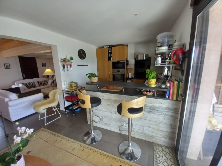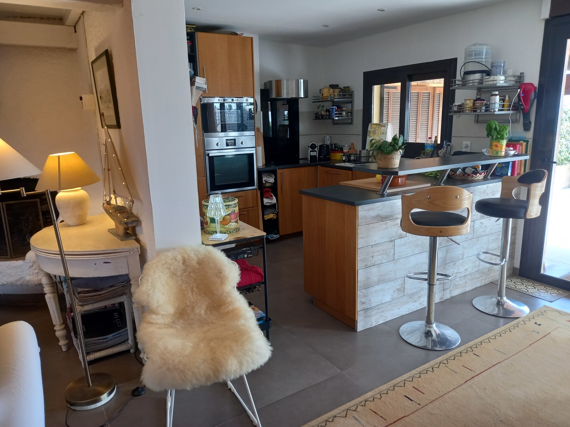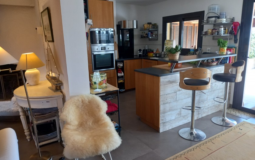 cuisine moderne récente (2017). La terrasse est très bien équipée en mobilier d'extérieur, ainsi que Transat, chaises longues, parasol de plage etc..