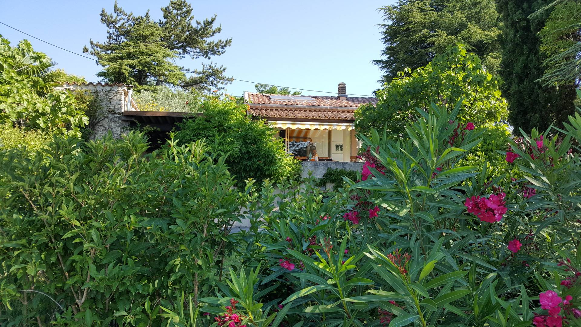 Le jardin, très arboré, est orienté vers le Sud. Il est protégé du voisinage de par sa situation ainsi que par sa riche végétation. Jardin et terrasse offrent de belles vues sur le vieux village, la Citadelle, et le Luberon.