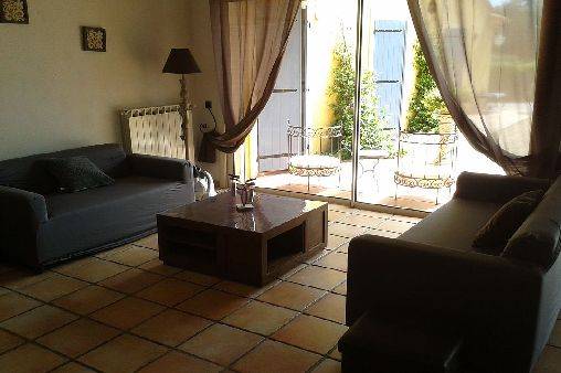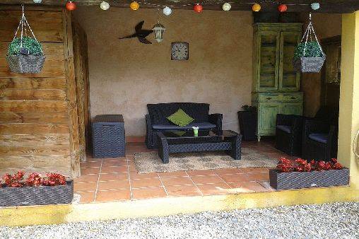 accés sur une terrasse couverte et ombragée.