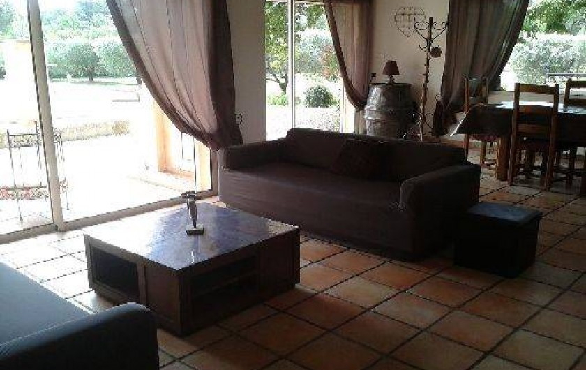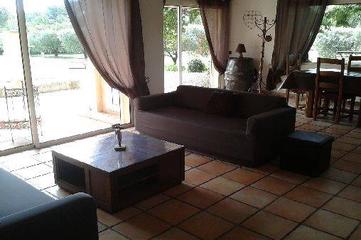 Une salle à manger salon trés lumineux (trois grandes baies vitrées) donnant sur une terrasse avec barbecue. A l'interieur se trouve une grande cheminée, un téléviseur led tv avec lecteur DVD.