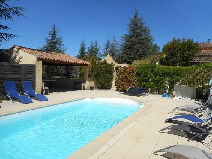 Piscine chauffée et close (Mi avril a fin Septembre) avec bain de soleil pour tous et parasols. Poolhouse avec