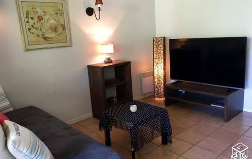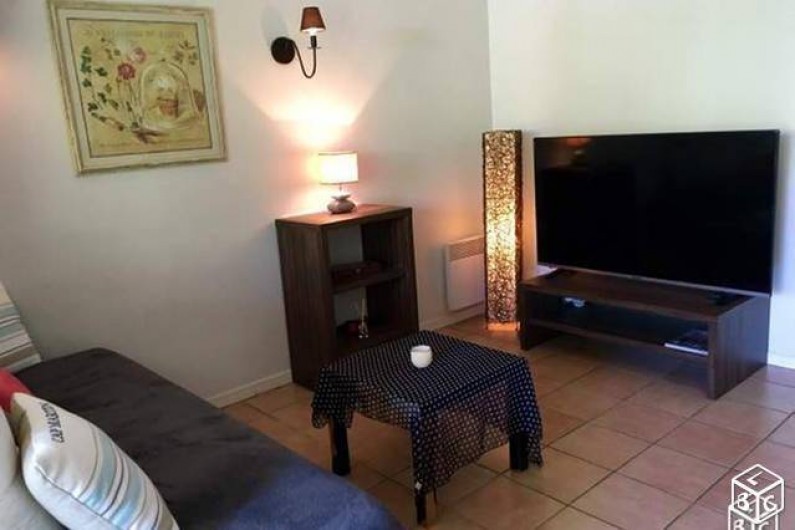 En bas, salon avec télé plasma, canapé gigogne pour 2 couchages supplémentaire, rideaux occultant, table pour 6 personnes.Cuisine toute équipée, wc séparé et placard sous l'escalier.