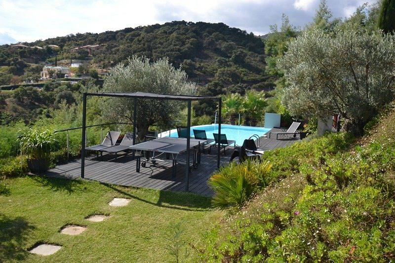 Niveau piscine : Piscine chauffee de mai à Octobre inclus , à débordement , pool house avec douche , toilettes , réfrigérateur table top , micro ondes , coin salon ombragé et terrasses en bois ., table de Ping Pong … NOUVEAU cette année un appartement indépendant mais toujours loué ou non avec la maison , accessible par niveau piscine avec belle vue mer , collines et piscine a été aménagé , il se compose d’un sejour avec canapé lit transformable très confortable , une chambre séparée avec lit en 160 , cuisine équipée , bar et salle d’eau avec douche à l’italienne et wc . IMPORTANT les clients dont le nombre serait inférieur à 10/12 et qui n’auraient pas besoin de l’appartement niveau piscine bénéficieraient d’une réduction de 15 a 20% suivant la saison Les différents étages permettent à chaque occupant de conserver son intimité.