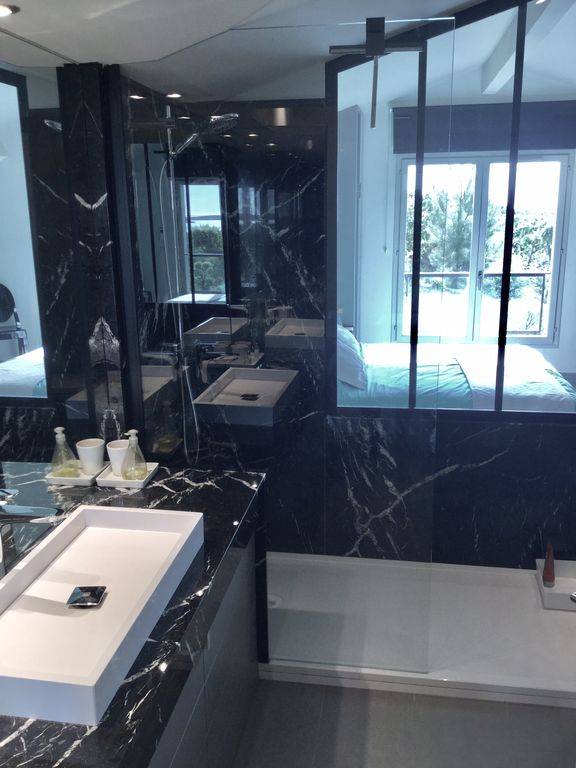 Décoration personnalisée et mobilier contemporain de qualité . Cuisine Boffi , matériel raffiné et très complet . Les salles de bain sont éclairées par la lumière du jour et bénéficient aussi d’une jolie vue .. ainsi que la cuisine ..