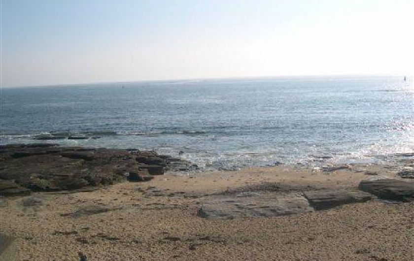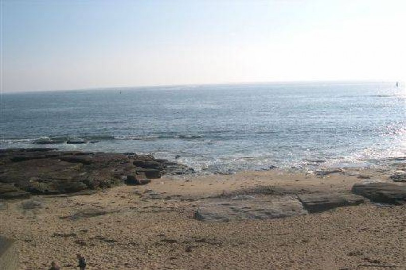 Petite plage de sable et rochers devant la maison.