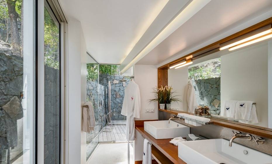 Les chambres de la villa sont situées au-dessus et en dessous du salon principal et terrasse, permettant un bon équilibre entre la commodité et la vie privée.