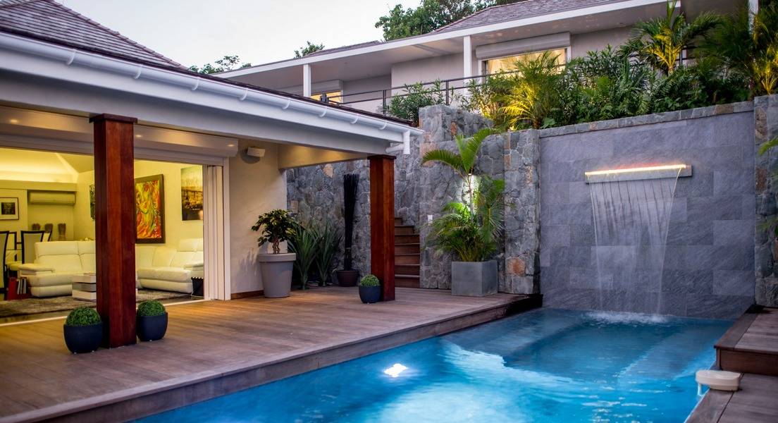 Magnifique piscine, système d'alarme, pont et chaises longues, barbecue en plein air, cascade, et une vue imprenable sur la baie Flamands