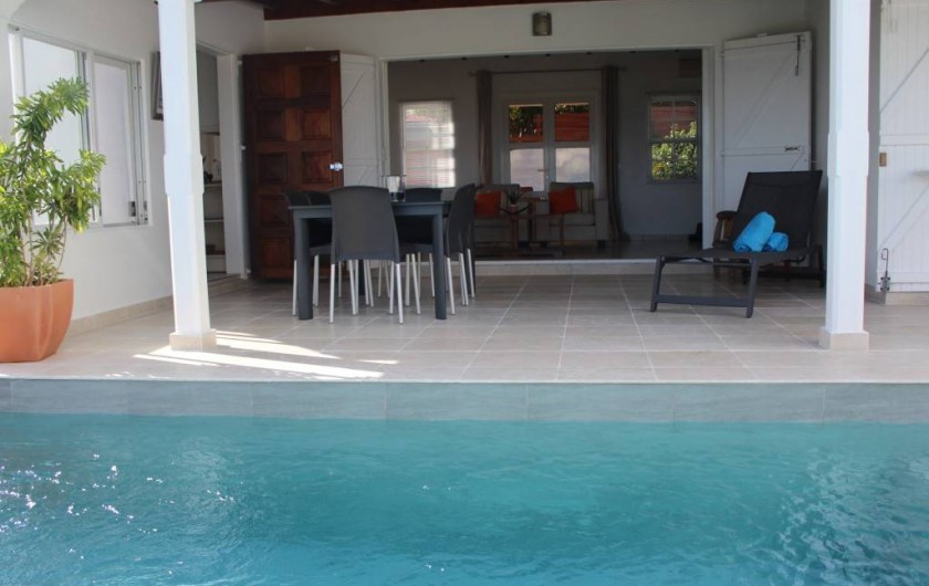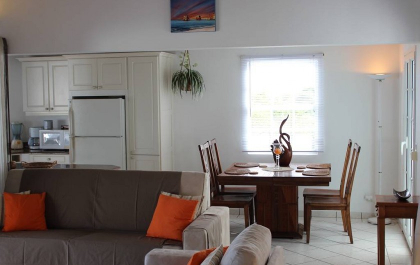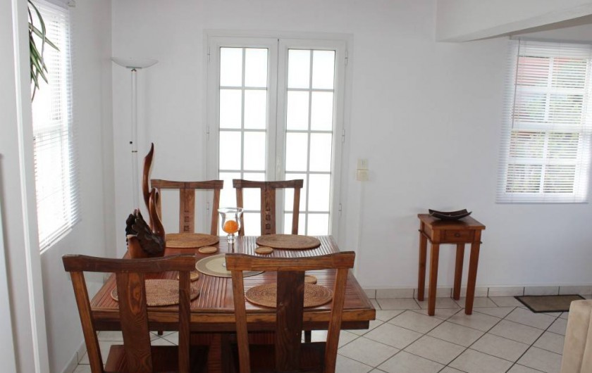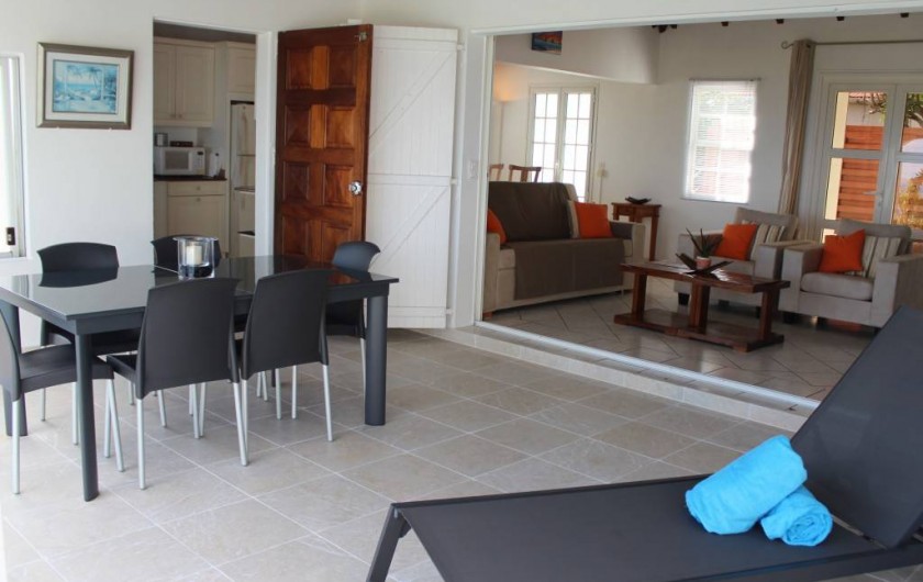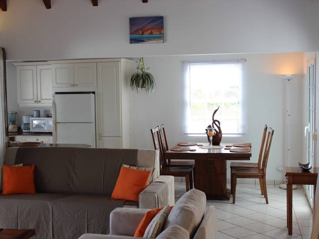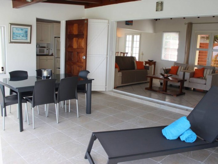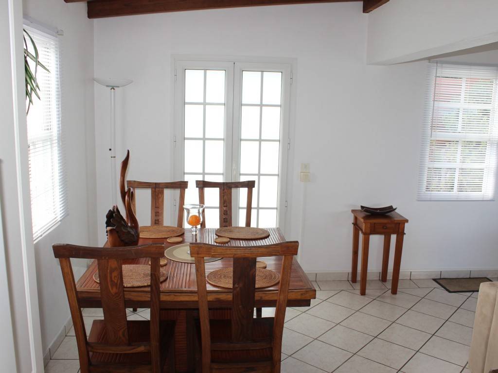 avec sa table de salle à l'intérieur, est également climatisée, ouverte sur le salon et dispose d'un accès direct à la terrasse couverte.