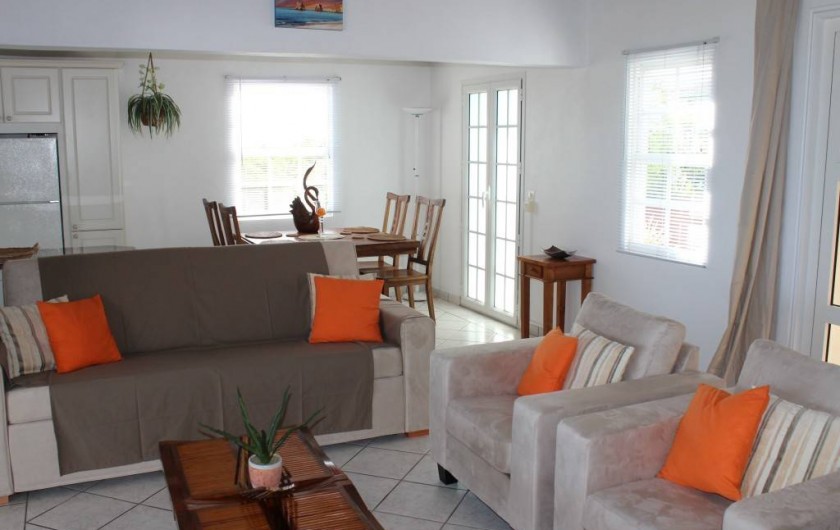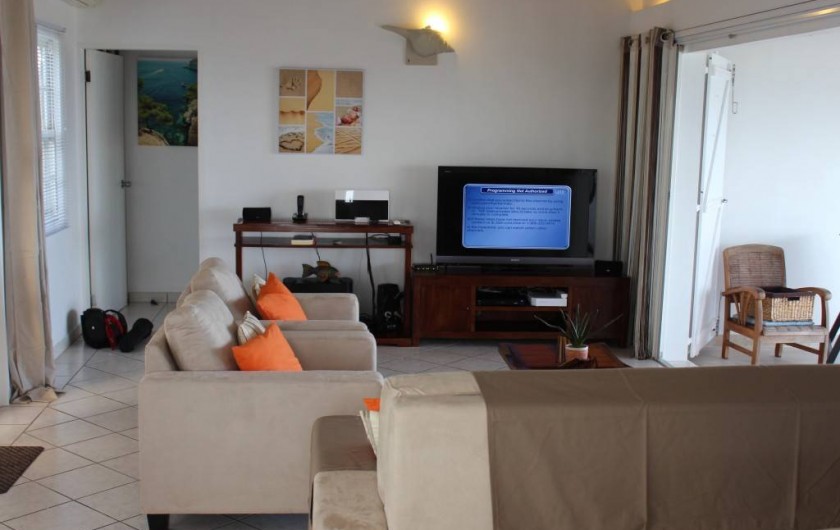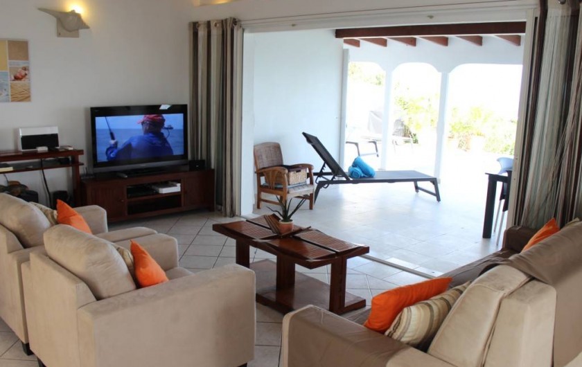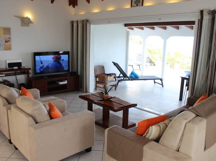 Le salon climatisé est équipée d'une télévision LED 46 ', CD / DVD / i-Pod, Bose2. 1 système surround. Satellite américain et français Convertible Canapé-lit!