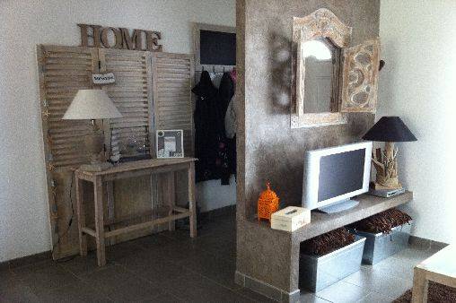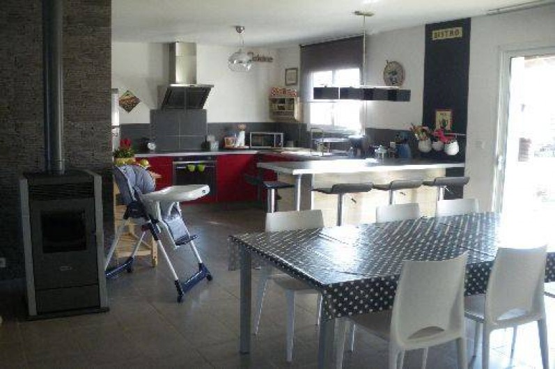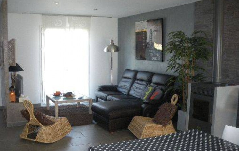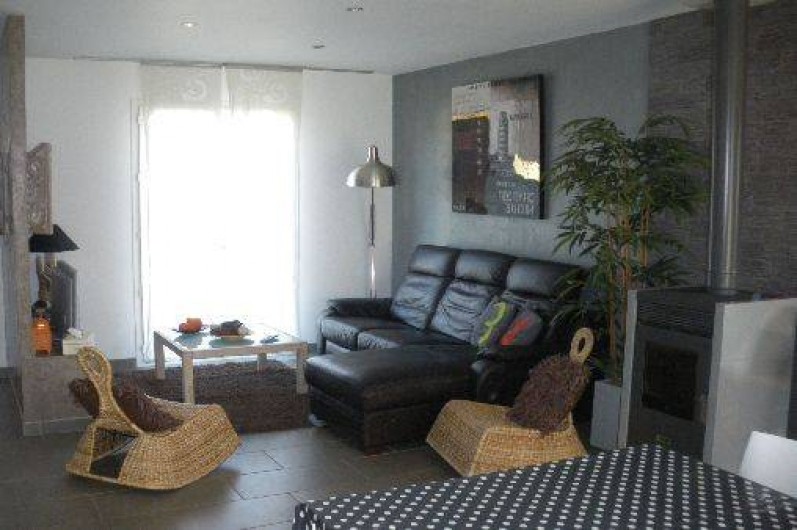 *séjour-salon avec table+6 chaises, salon cuir, télé écran plat et tnt, lecteur DVD, chaine HI-FI