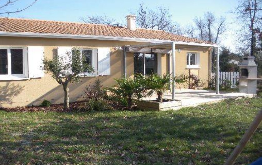 Maison récente de 100 m2 sur terrain clos et boisé de 550 m2 situé à 600m du centre ville d'Hourtin, à 2km du lac et 9km de l'océan.