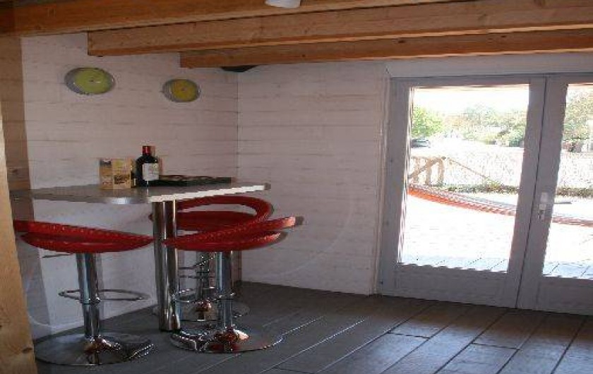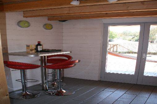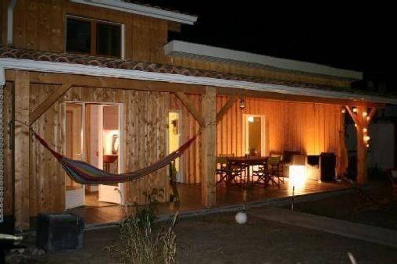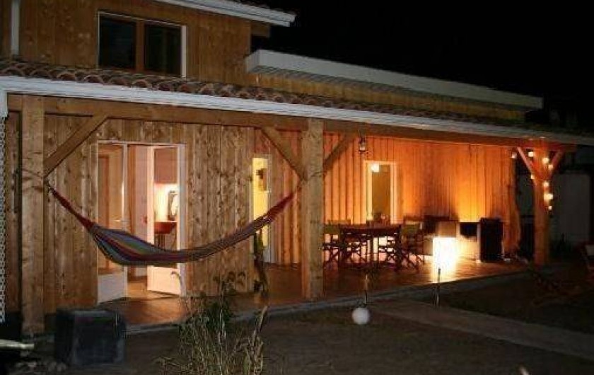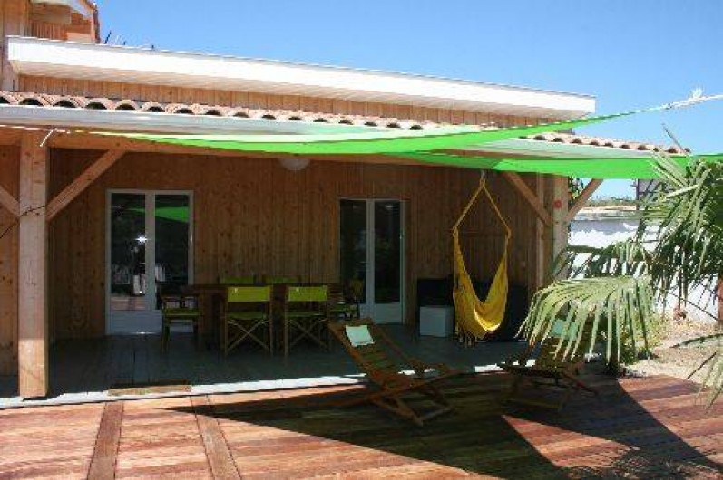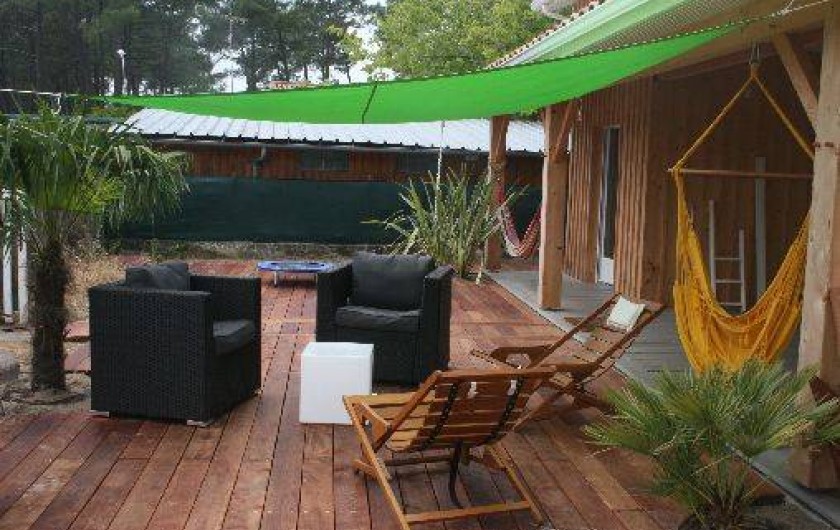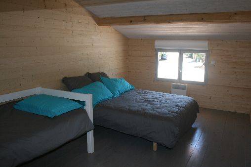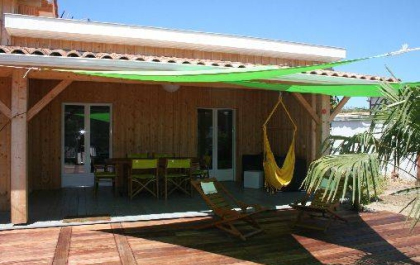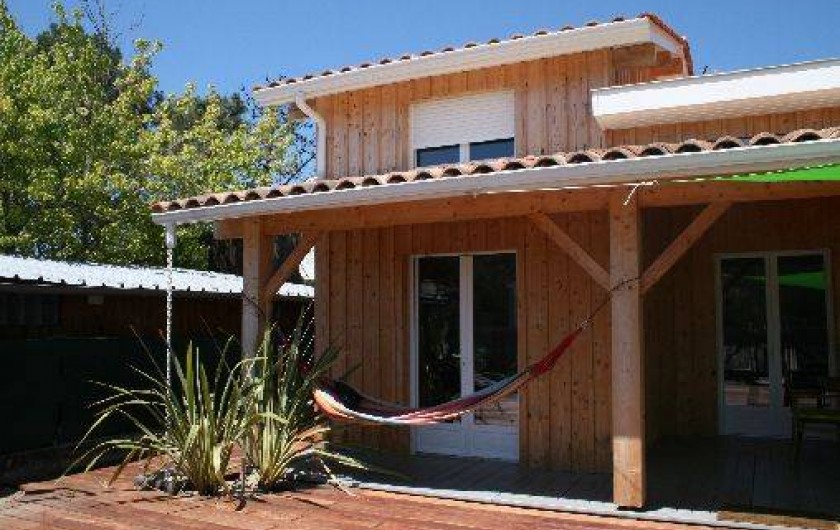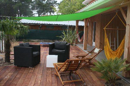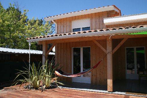 Petite maison en bois, entièrement rénovée en 2010, exposée plein Sud, à 100 mètres de la plage principale de Piqueyrot.