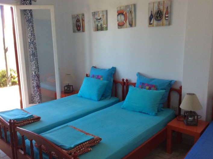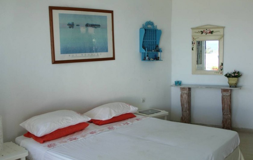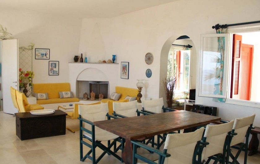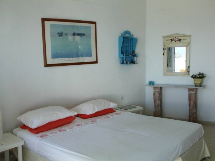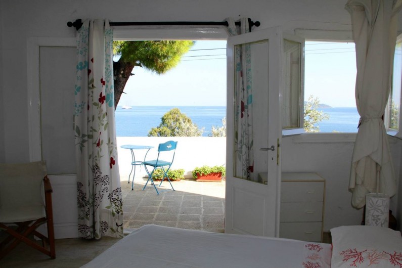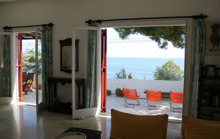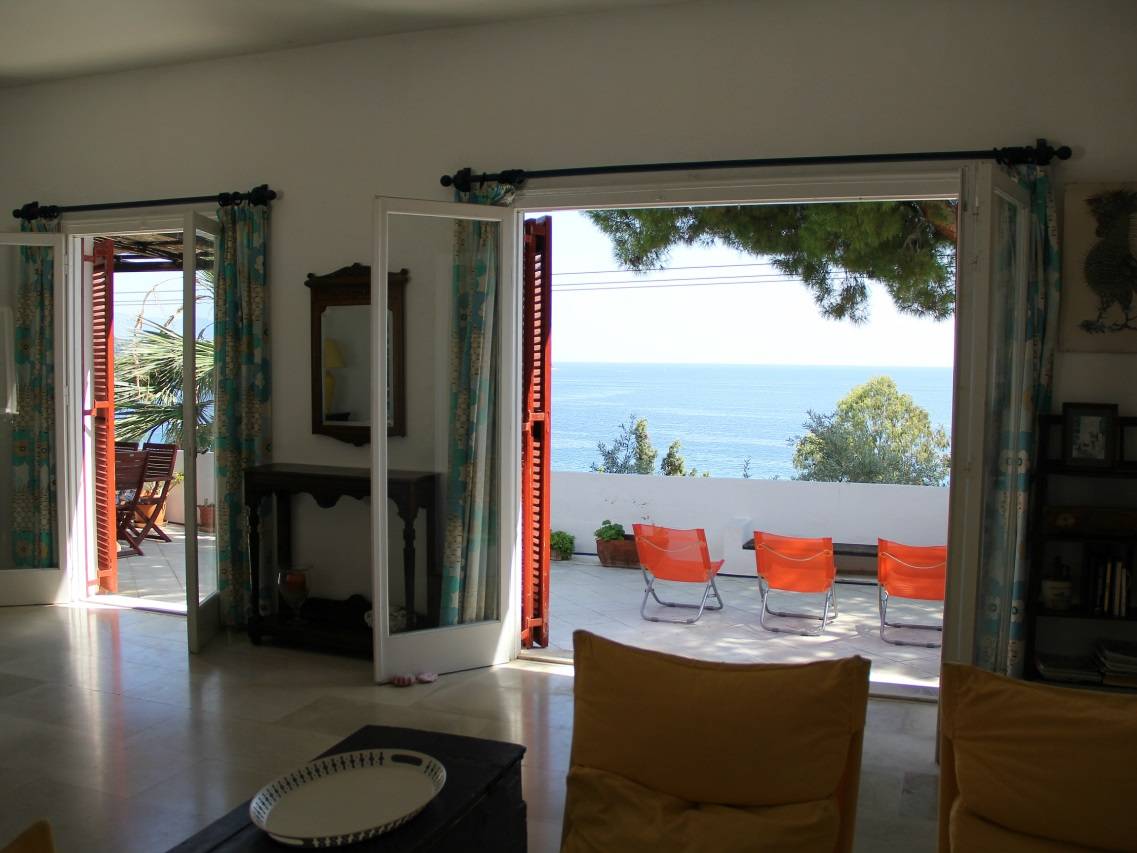 Sur 2 niveaux, elle est entièrement orientée sur la mer avec un séjour de 50m² et une cuisine ouverts de plain-pied sur une vaste terrasse, 3 chambres (7 lits), 2 salles d'eaux et une douche extérieure au soleil. Accolé à la villa, un duplex