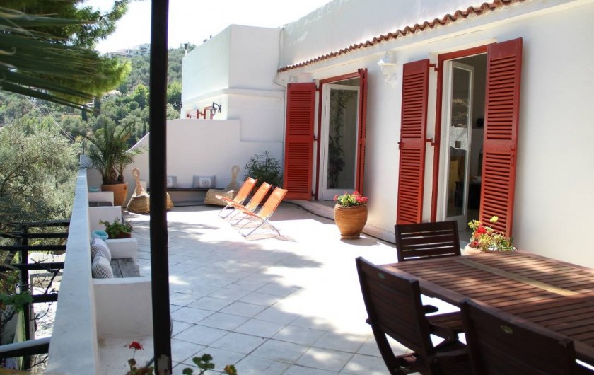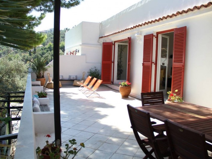 Au milieu d'un magnifique jardin de pins et d'oliviers à flan de colline, la vill' Anouck vous séduira par sa vue panoramique sur la mer. A seulement quelques mètres de la plage et à 15 mn à pieds du village, son exceptionnel emplacement permettra au résidants une véritable autonomie et une intimité durant la période estivale.