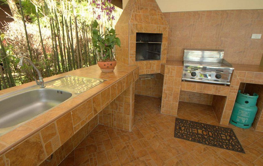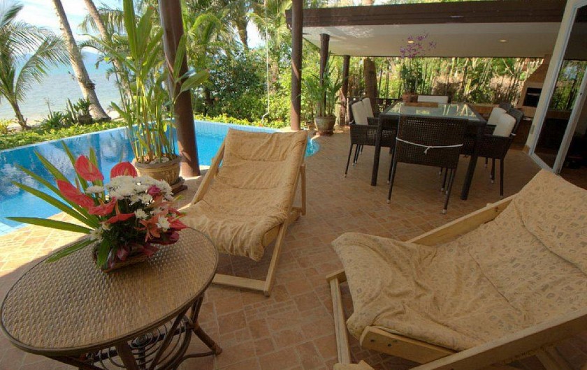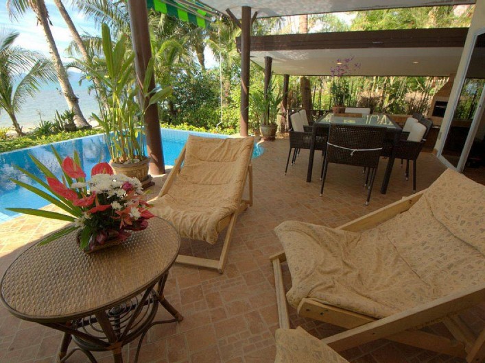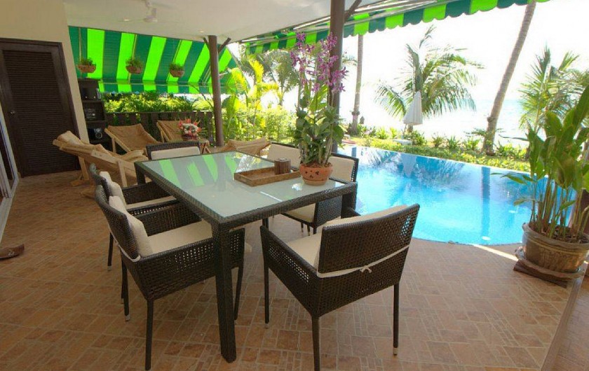 La villa est située dans un resort calme de Bang Por Beach (une des plus belles plages de Samui). Vous avez le service ménage tous les jours pour les parties vie et 2 fois par semaine pour les chambres. Un poolman pour votre piscine, une jardinière pour vos fleurs et un gardien de nuit et un circuit CCTV (pas vraiment nécessaire mais ca rassure) pour votre sécurité. Le service maintenance est assure 7 jours sur 7. Vous avez des restaurants de fruits de mer tout prés de la villa en suivant la plage et vous pouvez aussi commander vos repas (quelques euros seulement) qui vous seront livres … dans l’heure. Vous avez une zone BBQ grill & plancha gaz juste sur votre terrasse. Lire moins Lire la suite
