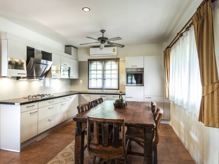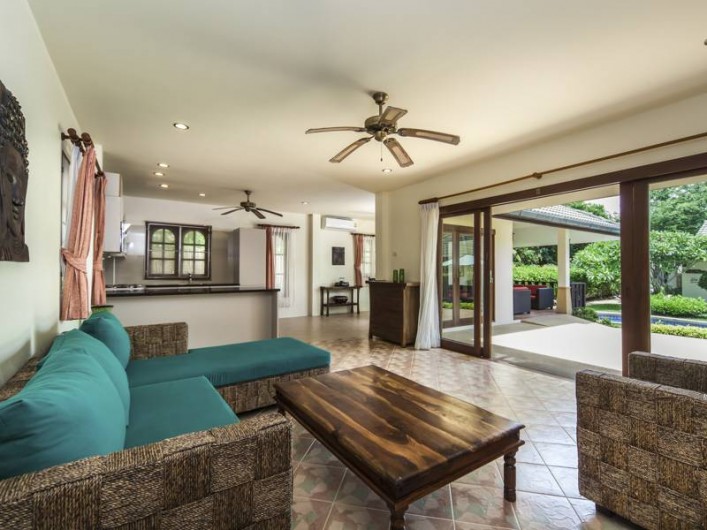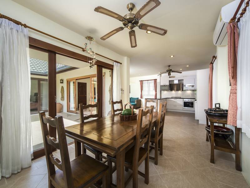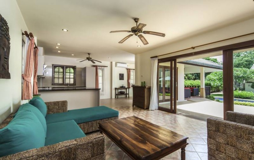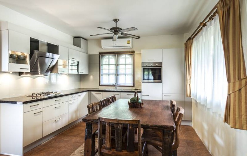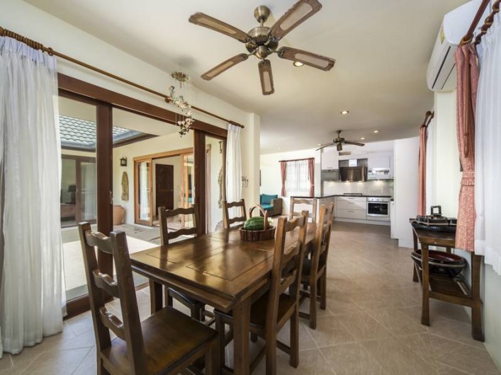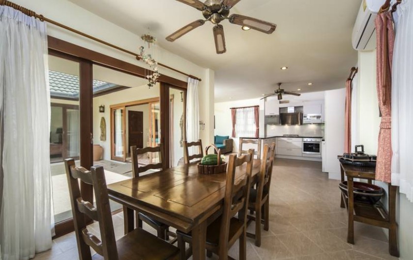 La villa est très spacieuse (175 m2), est luxueusement meublée et possède un jardin tropical privé et une piscine. Et il y a aussi une pataugeoire. La villa a 3 chambres à coucher, 3 salles de bains, une salle de séjour / la salle à manger et la cuisine avec tout l'équipement possible (lave-vaisselle, micro-onde, presse-fruits, machine à café). La villa est entièrement climatisée. À côté de la piscine, vous trouverez également une piscine pour les enfants. Il y a également une terrasse couverte et un jardin. La