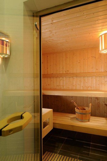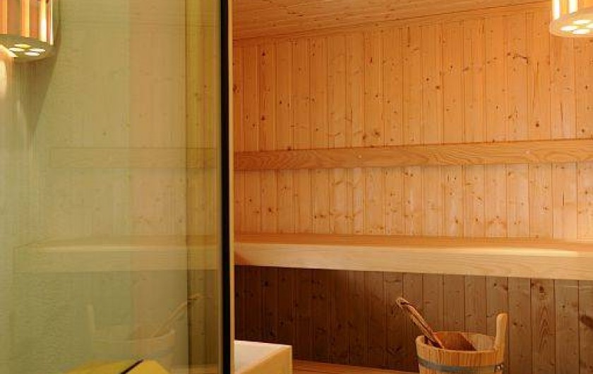 salon, cuisine américaine. 2 chambres doubles avec salle de bains attenante. 1 chambre avec 2 lits simples. Sous-sol : 1 chambre double avec salle de bains attenante, coin gym, table de ping-pong, sauna, hammam, Jacuzzi et buanderie. Les chambres du rez-de-chaussée comportent vue sur la mer, climatisation, porte-fenêtre avec grillage, tables de chevet, commode, armoire, tiroirs, télévision numérique, lecteur DVD, coffre-fort, téléphone et Internet.