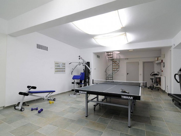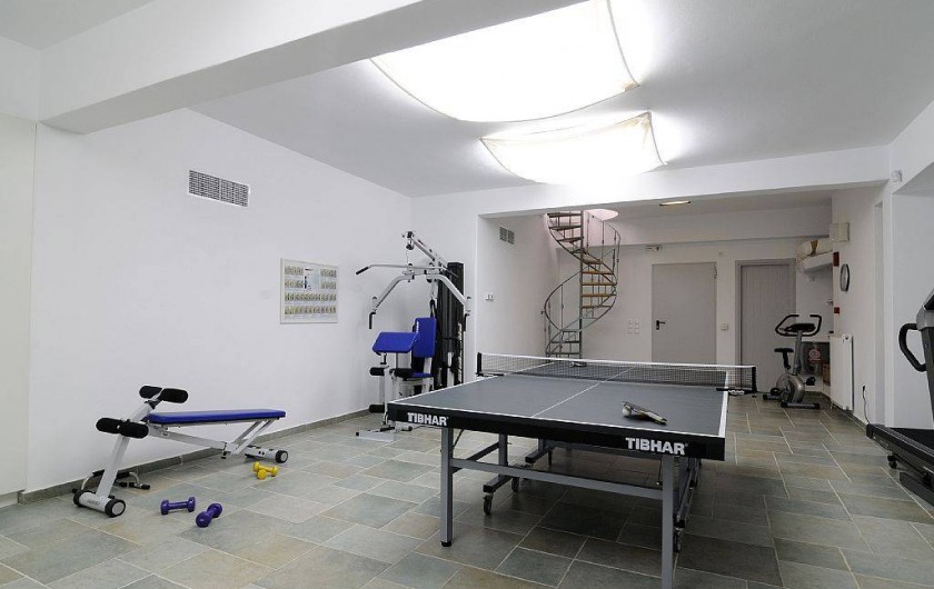 Le sous-sol de chaque villa a 1 salle de gym (tapis roulant, vélo d’appartement, équipement pour faire 30 exercices différents avec poids, bancs pour les abdominaux, tapis de gym, balles de Pilates, bancs de step et table de ping-pong avec raquettes. Coin spa (sauna, hammam et Jacuzzi).