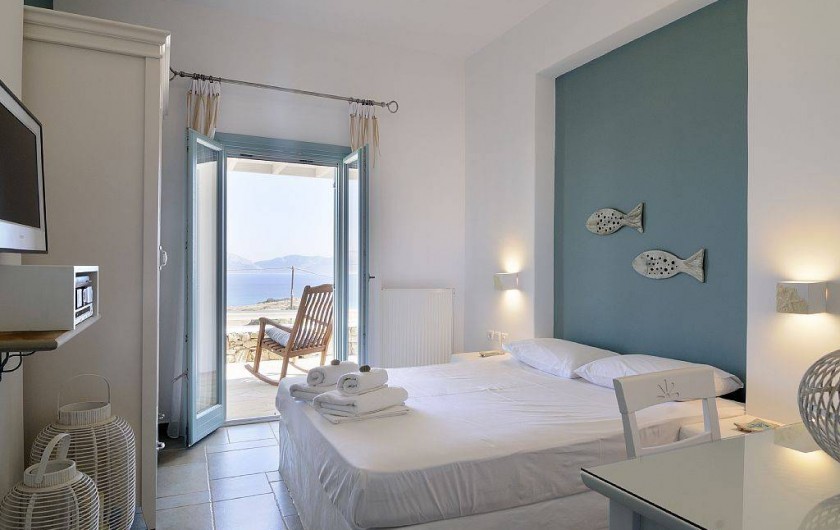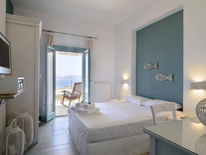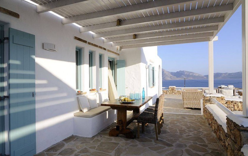 Les villas sont entourées par un jardin très bien intégré au paysage des Cyclades et au terrain naturel de l’île. Un petit champ de melon et un coin d’herbe permettent aux visiteurs de profiter de quelques légumes frais biologiques. Le jardin offre également plusieurs endroits pour se détendre et admirer la vue pour ceux qui veulent en profiter ou s’éloigner un peu des coins piscine et détente.