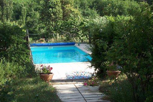 Maison de campagne sur grand terrain arboré, avec piscine cloturée, cuisine d'été avec barbecue et four à pizza, toutes commodités, femme de ménage 3h par semaine inclus dans le tarif.
