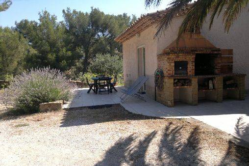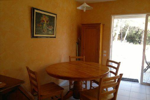 Belle et spacieuse aile de villa T3 avec son agréable terrasse donnant sur le jardin ombragé de pins avec son barbecue- four à pizza privatif dans une grande propriété fermée à 15 min de la plage.