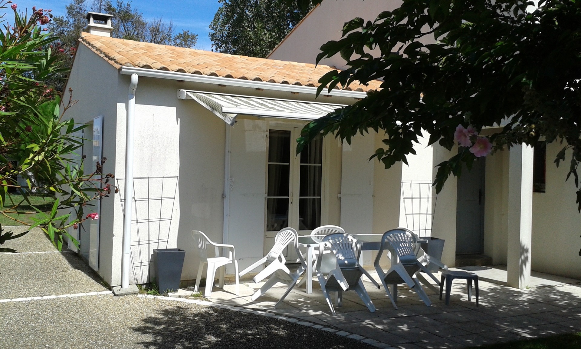 2 terrasses avec store-ban: tables de jardin et fauteuils; Barbecue; plancha