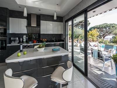 Superbe Villa Californienne de 270 m2, neuve avec piscine située à CANNES, Croix Des Gardes, à deux pas du centre ville des commerces, de la plage et de la Croisette. Exposition Sud/Sud-Ouest avec vue panoramique sur mer et montagne. Villa posée sur un terrain clos et paysagé de 1500m2 au calme sans vis à vis. Parking sous-sol fermé pour 7 à 8 voitures et parking extérieur pour 3 à 4 voitures. La Villa, sécurisée, dispose d'une alarme extérieure et intérieure. Climatisation dans chaque pièce à vivre, Internet, aspiration centralisée et tout le confort moderne et nécessaire