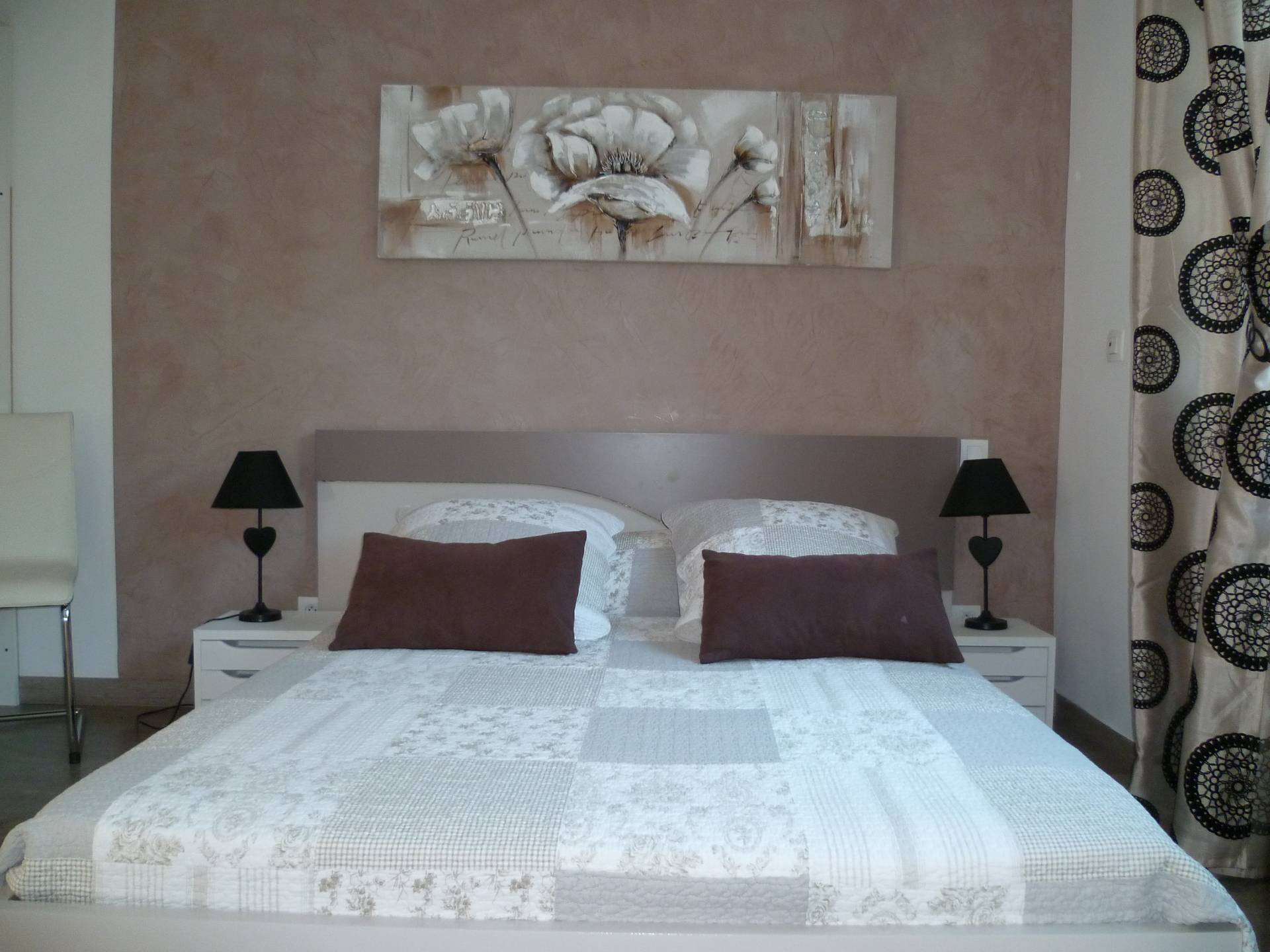 1 chambre climatisée avec TV, personnalisée, spécialement aménagée aux normes pour personnes à mobilité réduite avec douche, lavabo et wc accessible depuis le sous-sol par ascenseur intérieur spécialement conçu, permettant l'accès en fauteuil roulant et accompagné.
