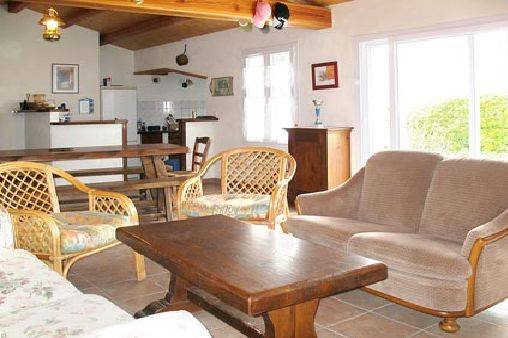 Environ 120 m² habitable, grand séjour salle à manger, cuisine à l'américaine dans le four à pain comprenant: gazinière, four électrique, four micro-onde, lave-vaisselle, réfrigérateur-congélateur. Une chambre avec un lit 2 pers (140). Une chambre avec deux lits superposés et un lit une pers (90). Une salle de bain, un W.C. A l'étage une grande pièce avec télévision, un lit 2 pers (160). Un WC. Garage: un lave-linge, un sèche linge et une douche. Jardin avec barbecue d'environ 180m2.