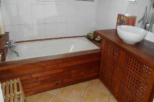 Cette habitation de plein pied, très lumineuse avec ses grandes baies vitrées qui s' ouvrent sur la terrasse et le jardin offre un charme particulier . Le style créole de la maison et sa décoration exotique vous invitent au dépaysement et à l' évasion tout en maintenant une douce intimité. Ses quatre chambres avec grands lits dont une avec 2 lits d' enfants supplémentaires,sont d' inspiration africaine , asiatique .ou encore antique. L' habitation dispose d' une salle de bain en teck et d' une salle d' eau ainsi que de 2 wc.