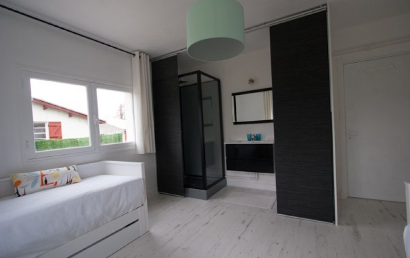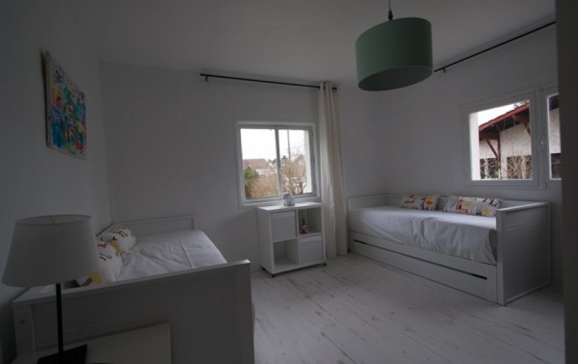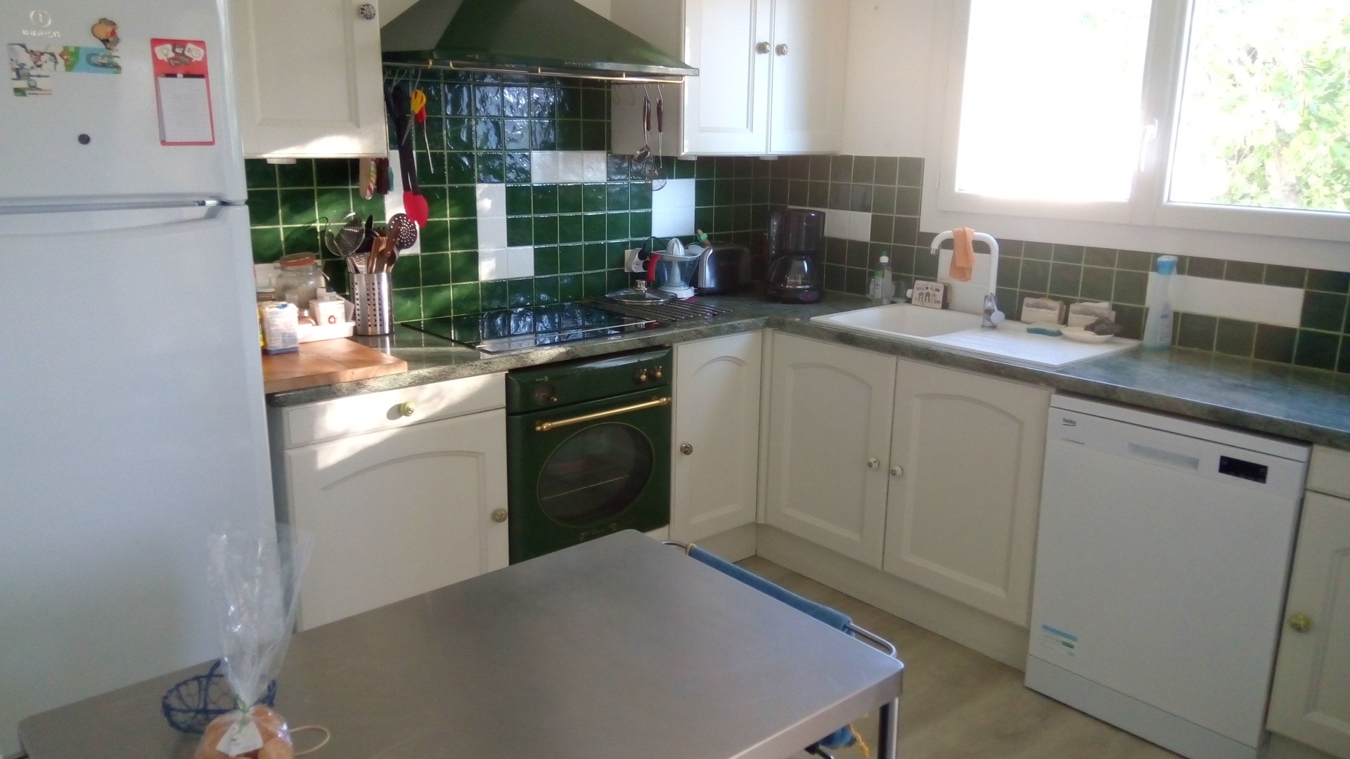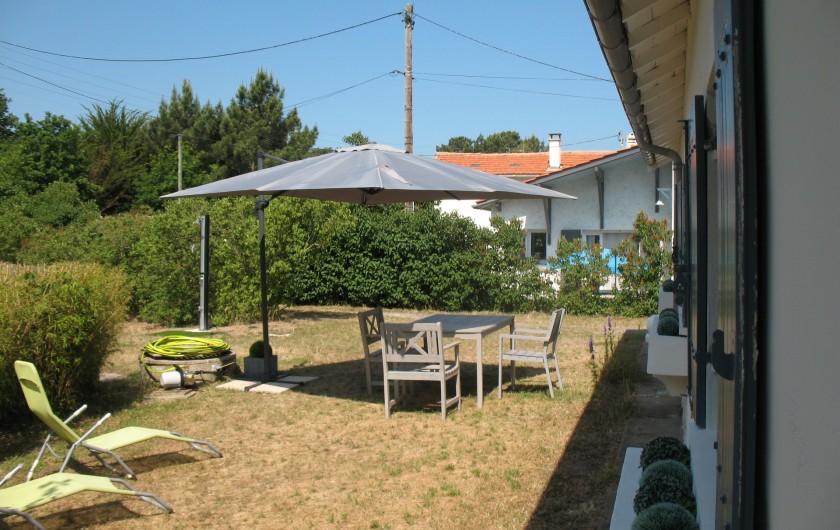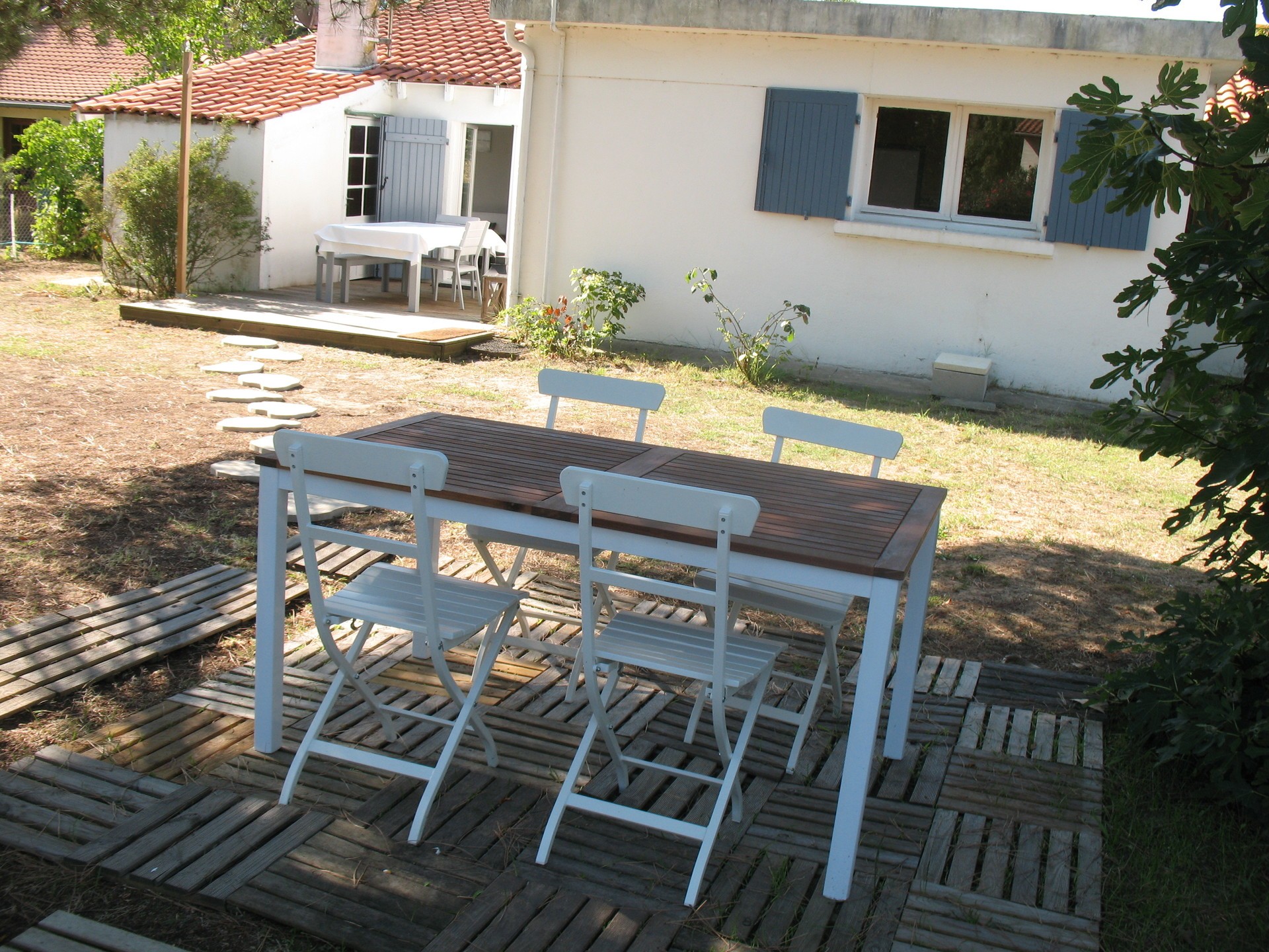 Maison de charme, 100 m2 de plain-pied, pièces spacieuses et lumineuses, rénovée totalement et agencée contemporaine et pratique. Entretien et amélioration chaque année. Equipement de haut de gamme (électroménager, vaisselle, accessoires, mobilier). Vous accéderez à tout en moins de 5 à 15 mn (plages, halles, centre ville, supermarché) à pied ou en vélo. Implantée au milieu d'un jardin arboré de 1200 m2 entièrement clos, dans un des plus beaux quartiers, au calme. Elle comprend 1 grande chambre (14.92 m2) avec deux lits de 80 extensibles en 160. Une grande chambre (16.35 m2) … avec un lit de 160. Un salon ou une chambre (15.76 m2) avec lit de 140, à votre convenance. Une grande salle à manger (19.65 m2) avec coin salon. Une SdE et 1 cabinet de toilette avec douche, lavabo et dressing. 2 WC. Une belle cuisine entièrement aménagée (9.10 m2).Vous profiterez des 4 aménagements extérieurs avec le mobilier de jardin, la terrasse accédant à la salle à manger, et les 3 espaces ombragés meublés. Une douche solaire extérieure vous permettra de vous rafraîchir et de vous rincer du sable qui n'ira donc pas dans les évacuations de la maison. Équivalence classement office du tourisme= 4* (non classée pour conserver une taxe de séjour faible). Location de mi juin à mi septembre, les tarifs varient selon les périodes, de 750 à 1180 € la semaine + 70 € de ménage. Plus de photos, conditions de fidélité, tarifs longue durée (+ de 2 semaines) ou dernière minute sur demande par téléphone. Echange téléphonique avant toute réservation définitive validée par un contrat et le paiement de 50%.. Lire moins Lire la suite