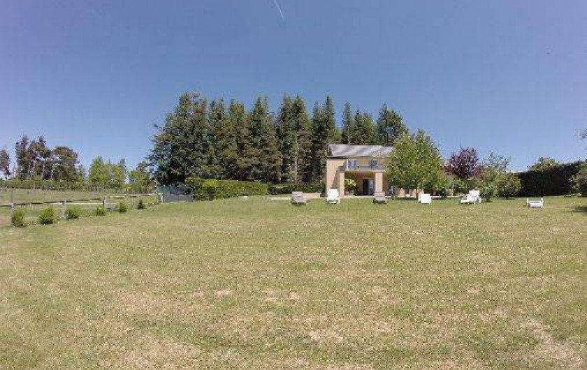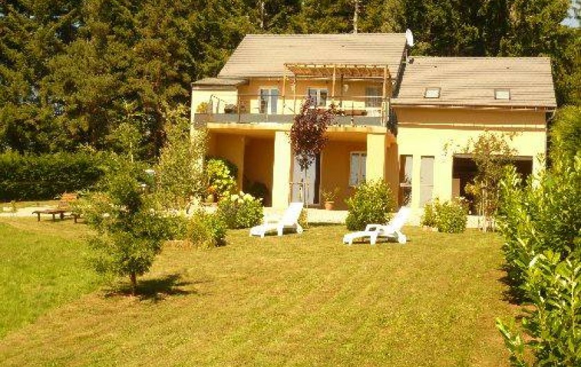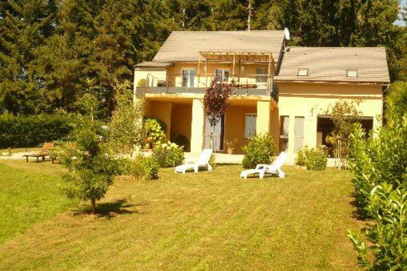 A l'étage il y a un grand séjour, salle à manger cuisine, 1 wc séparé, 1 salle d'eau avec 1 douche et double vasque, 4 chambres (pour 8 personnes) avec une grande terrasse avec magnifique vue sur les montagnes de l'Aubrac (de 500 à 1100€ la semaine, selon la saison).