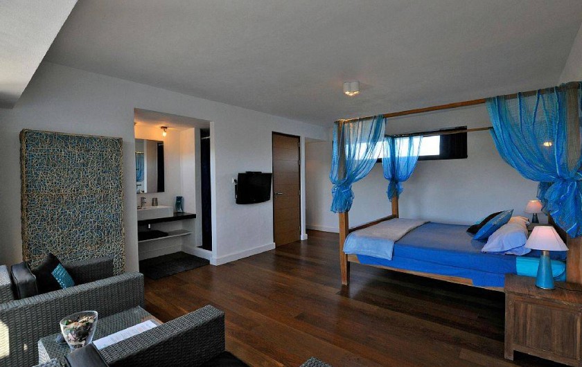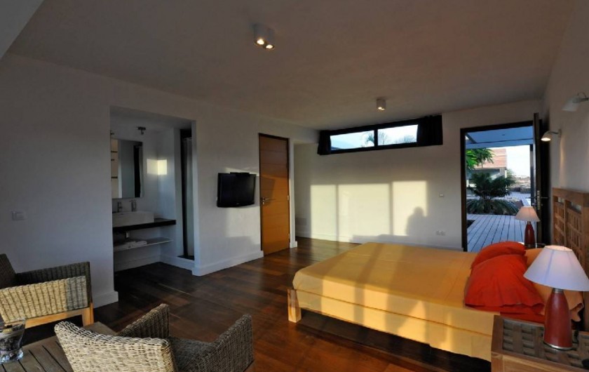 Trois chambres avec lits doubles (200x200) de teck bali avec grande douche lavabo et wc part.