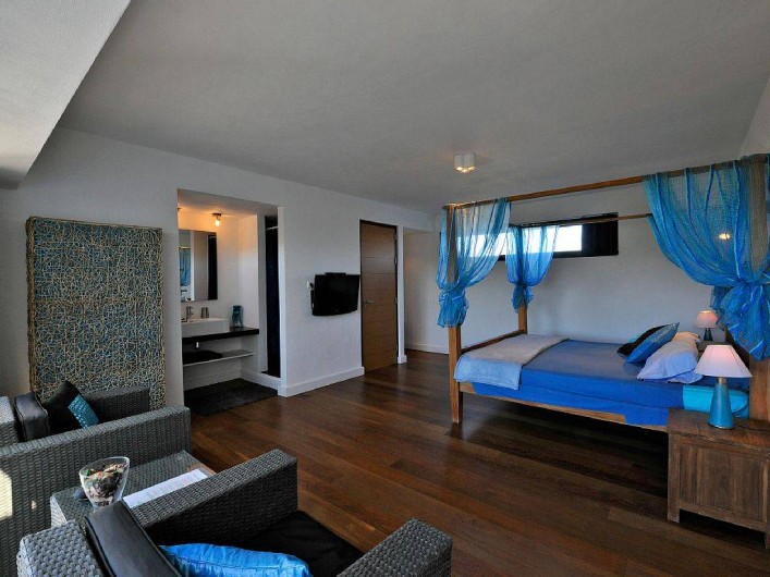 Toutes nos chambres sont équipées de TV TV LG-écran avec satellite, matelas 200x200 latex de haute qualité, 4 almuadas latex par Servical, canapés, le bois de bureaux (teck), jeux de 25 m², parquet EP tous les meubles en teck importés de Bali.