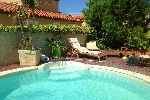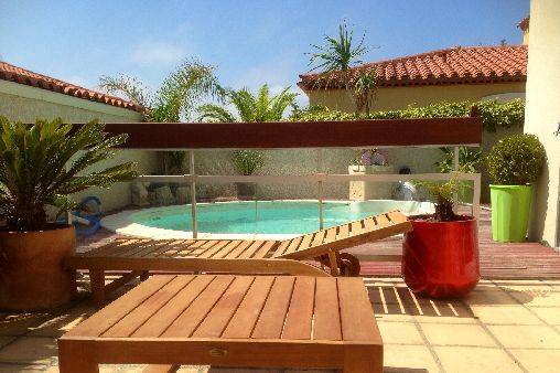 Villa à étages de 170m2 avec climatisation. comprenant une entree,cuisine équipée de 25m2 3chambres a l'étage avec terrasse,salle de douche à l'italienne avec deux vasques et wc,sejour de65m2 plein sud ouvert sur terrasse de66m2et25m2 piscine et jacuzzi jardin avec pelouse place de parking. Intérieure barbecue et plancha acces wifi Tv canal plus air play musique Denon avec enceinte Electra.les vélos sont fournie